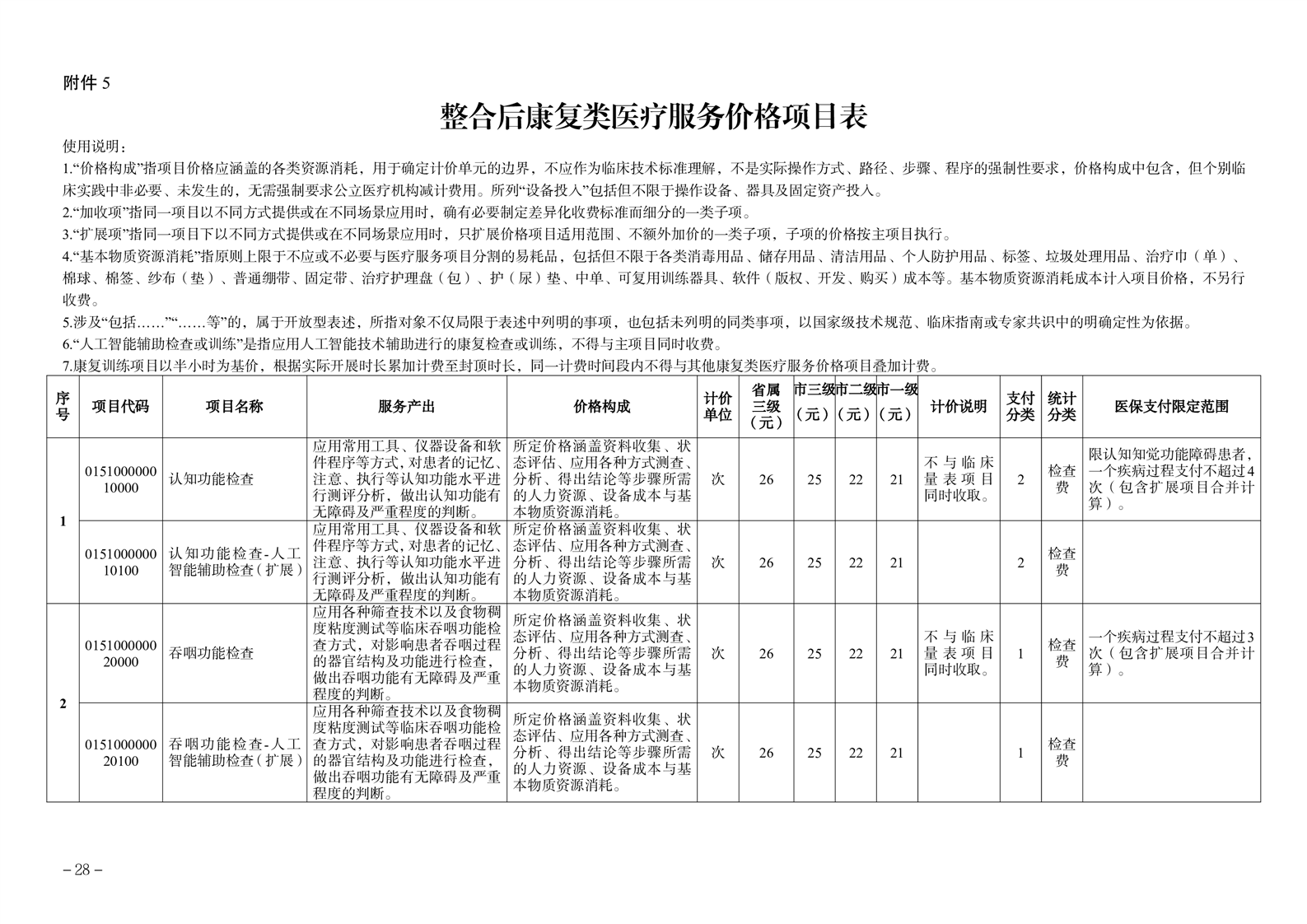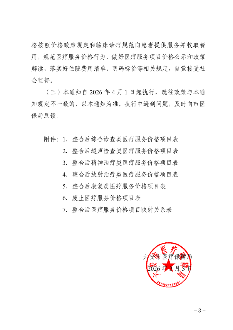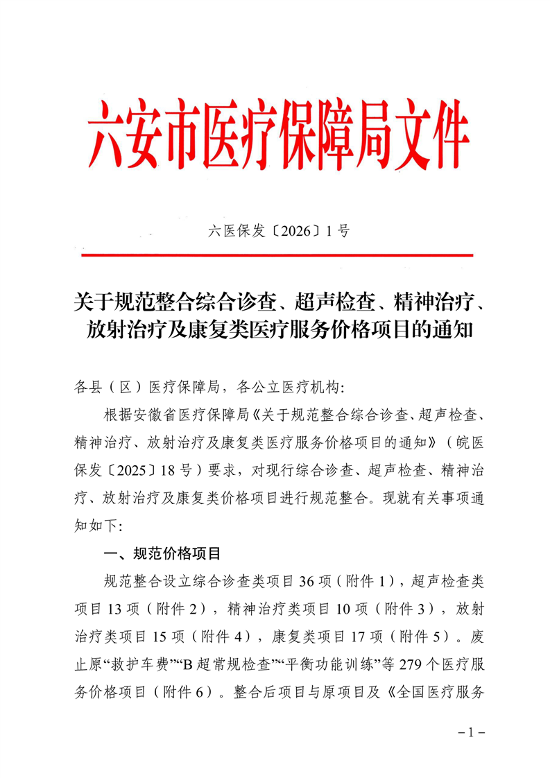 六医保发〔2026〕1号---规范整合综合诊查、超声检查、精神治疗、放射治疗及康复类医疗服务价格项目的通知