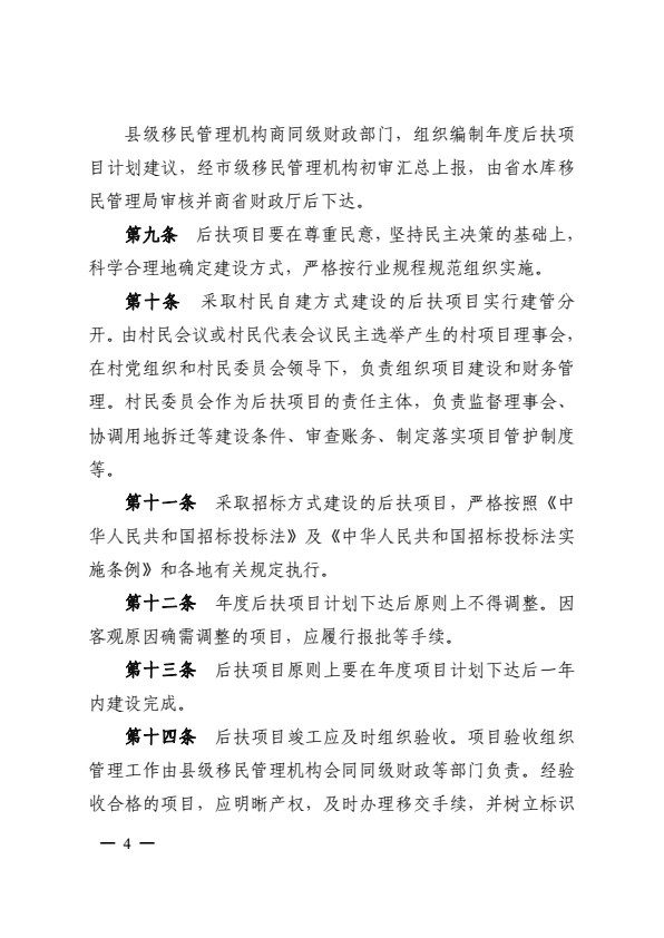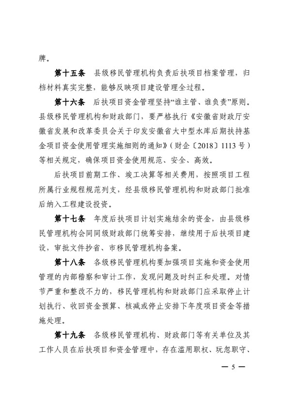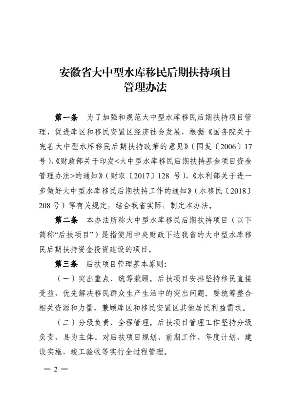 安徽省大中型水库移民后期扶持项目管理办法,政策与标准