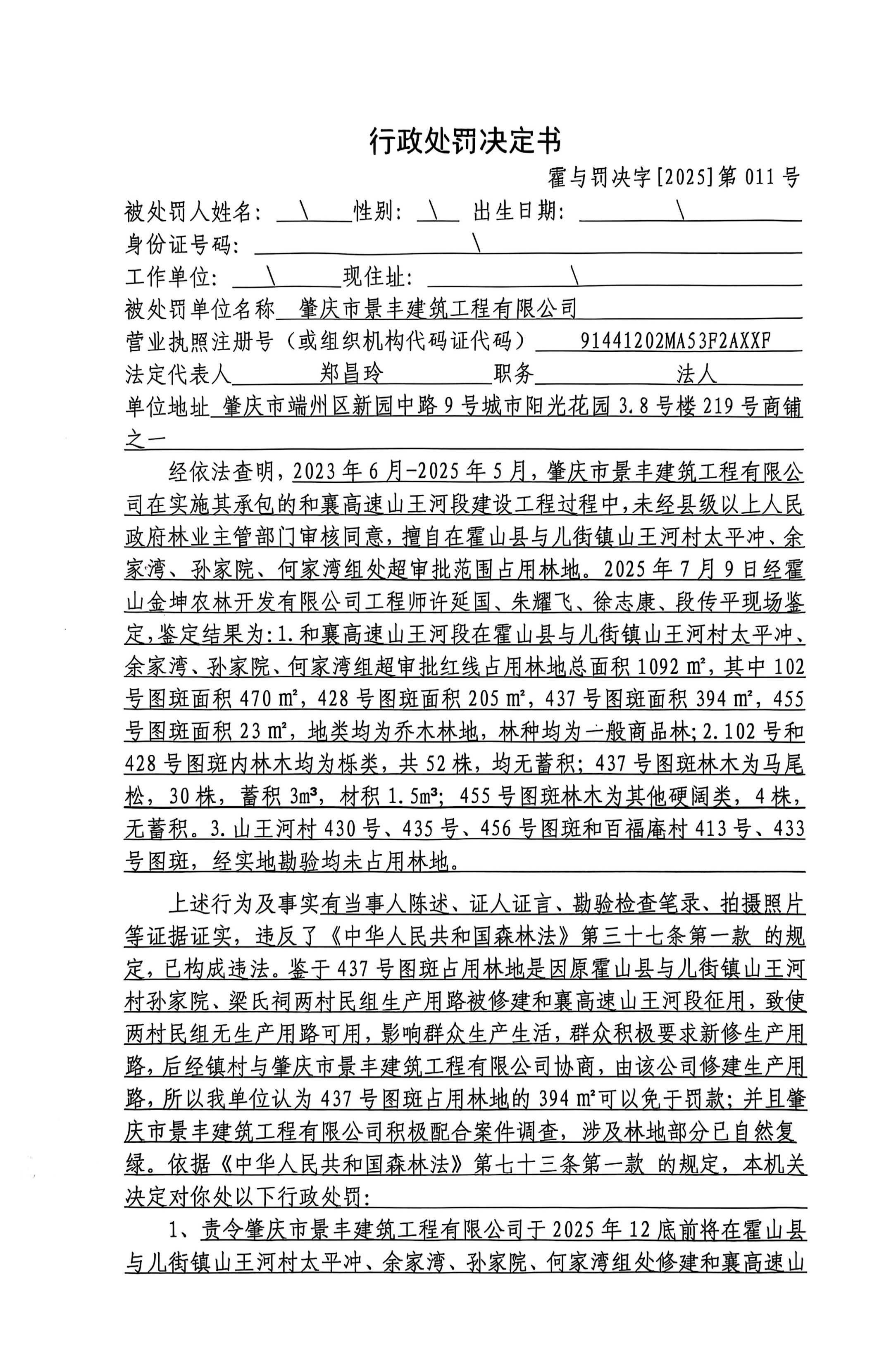 【行政处罚】霍与执决字[2025]第011号