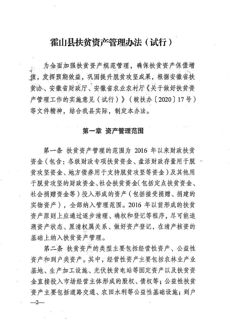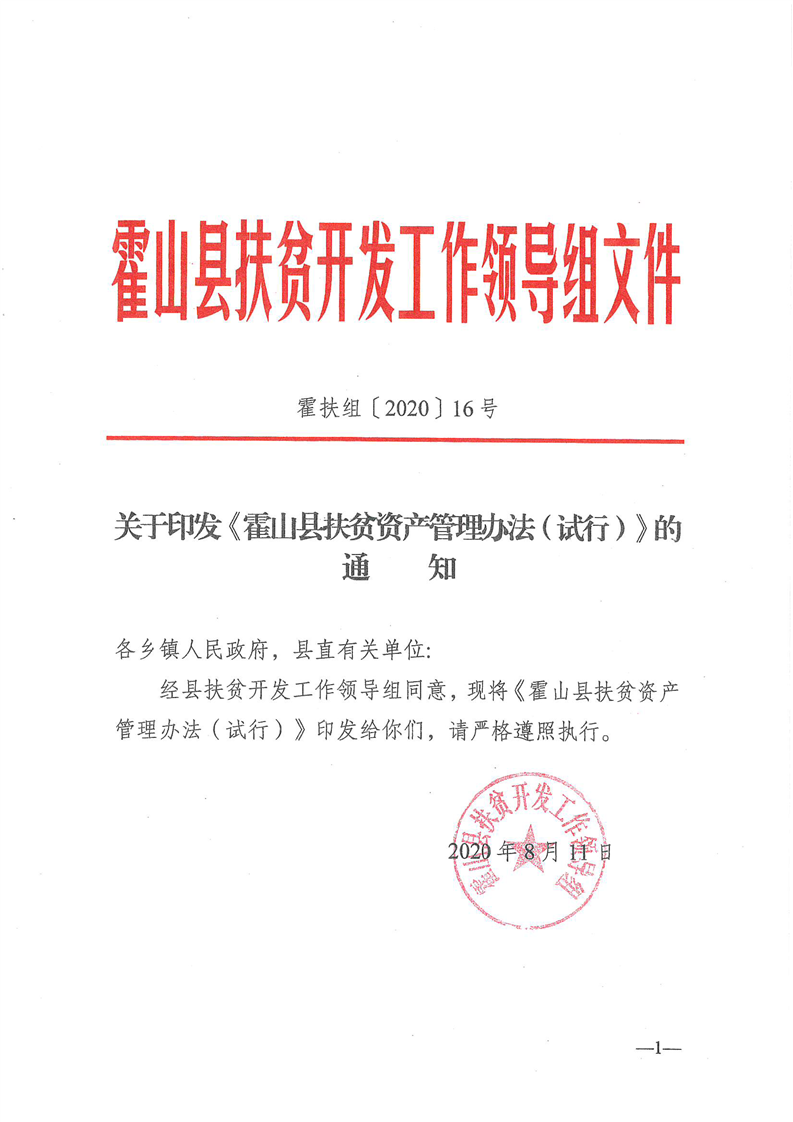 关于印发《霍山县扶贫资产管理办法(试行)》的通知