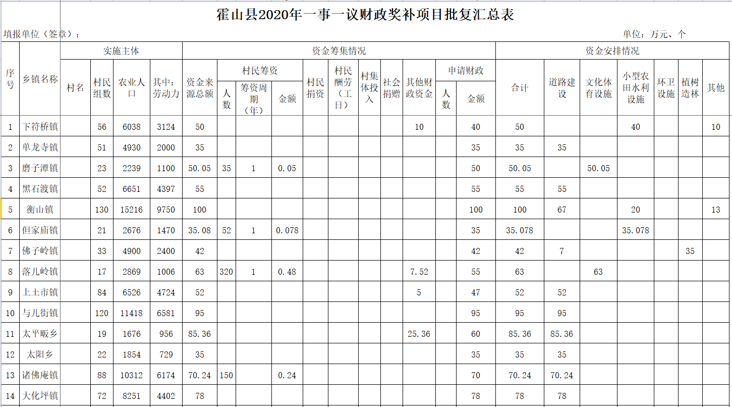 根据安徽省农村综合改革领导小组办公室《安徽省财政厅关于下达2020年度农村综合改革转移支付资金的通知》(皖财乡〔2019〕1451号)、《安徽省农村综合改革领导小组办公室关于做好2018年度村级公益事业建设一事一议财政奖补工作的通知(综改办〔2018〕1号)等文件精神,对你乡镇上报的村级公益事业建设一事一议财政奖补项目,经综改办复核,报县政府批准,同意列入2020年财政奖补项目,就项目实施有关事项提出如下意见: