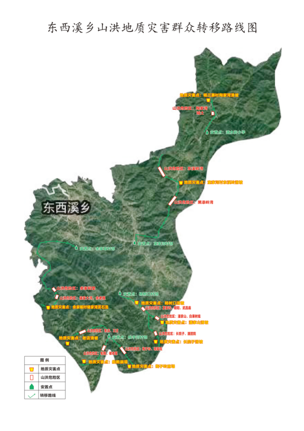1、山洪灾害重点防御区。乡境内共涉及3村125户461人受到山洪灾害威胁,其中:杨三寨村26户、106人,余家畈村22户、83人,童家河村77户、272人。详见表6.3-1东西溪乡山洪灾害风险人员转移避险统计表。