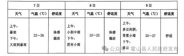 根据最新气象资料分析:今天我县多云间阴;明天阴转小到中雨,部分地区大雨;7日大雨,部分地区暴雨;8日小雨渐止;9日阴天到多云,局地阵雨。降水期间将伴有短时强降水、雷电、瞬时大风等对流性天气,请注意防范。