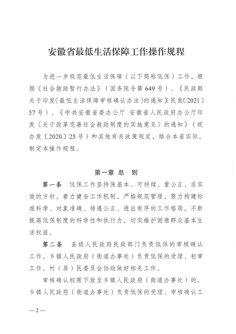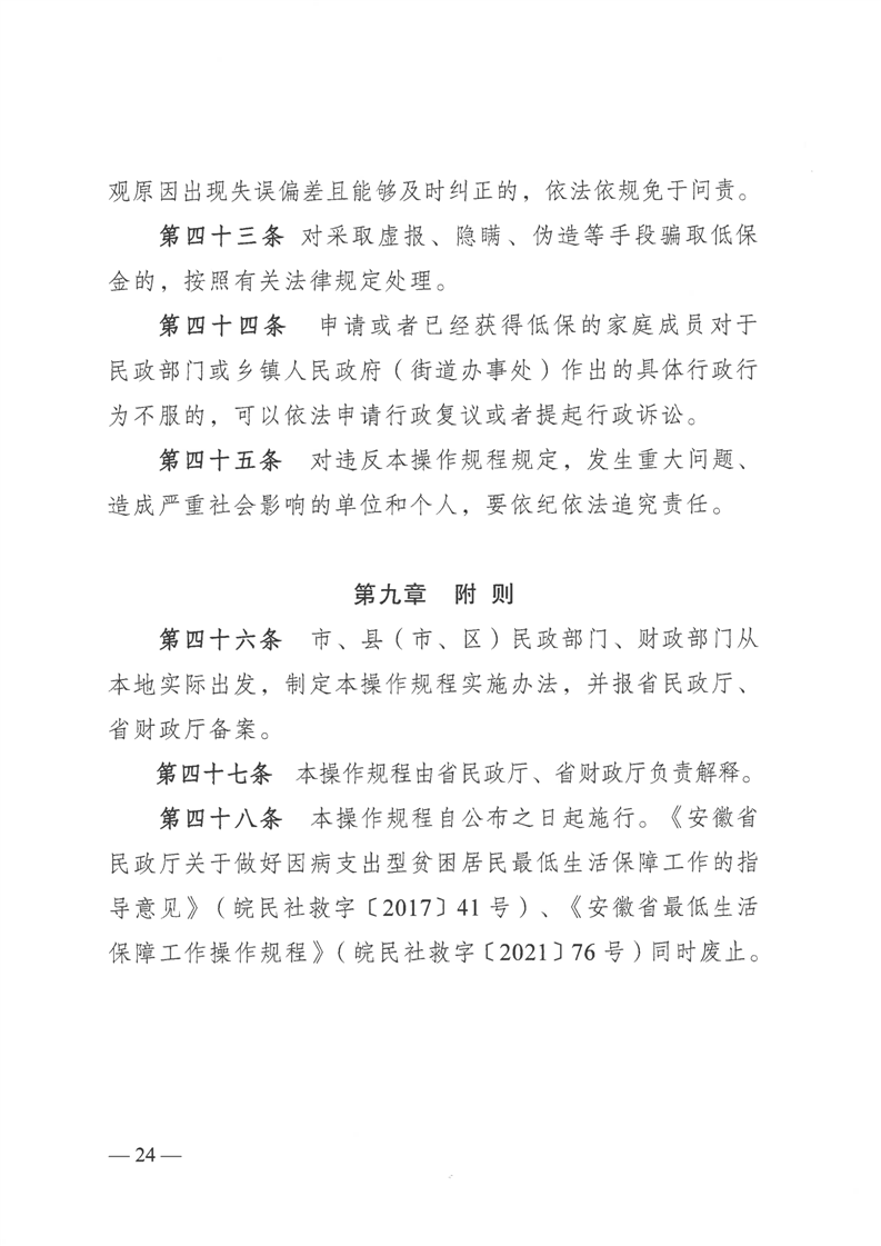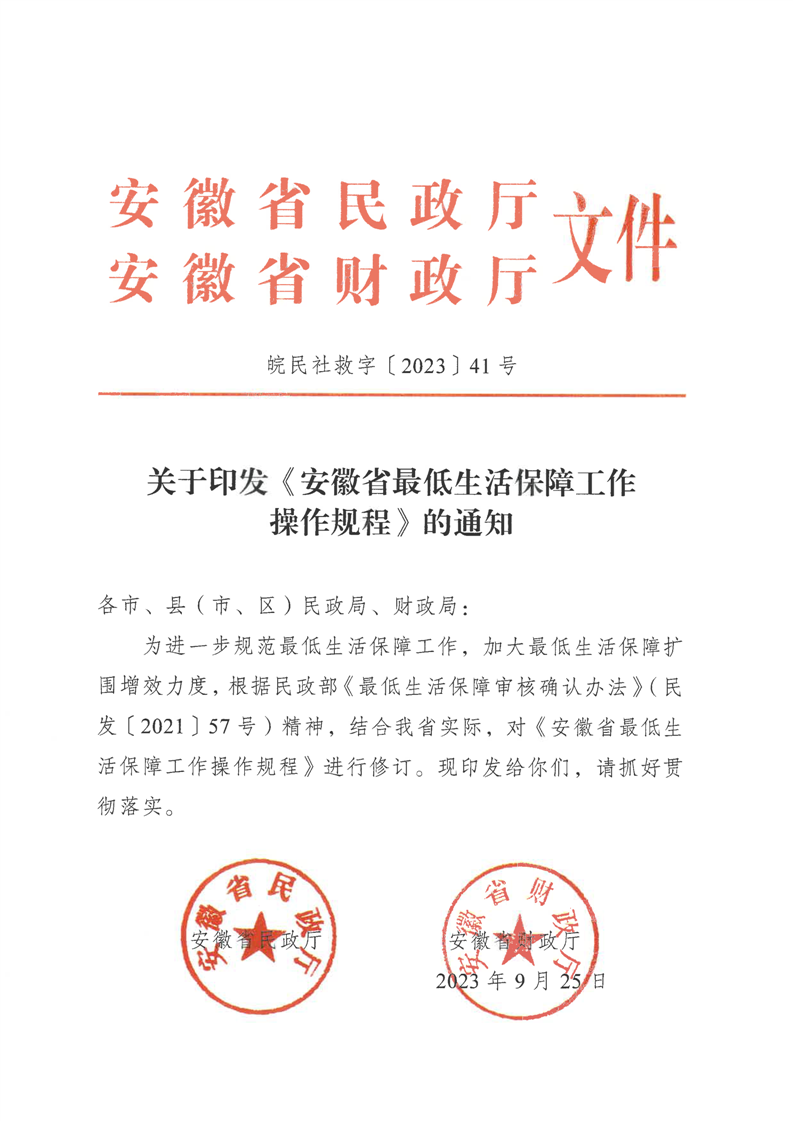 《安徽省最低生活保障工作操作规程》-皖民社救字【2023】41号