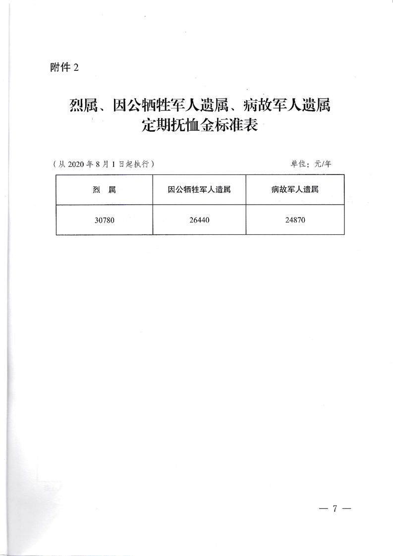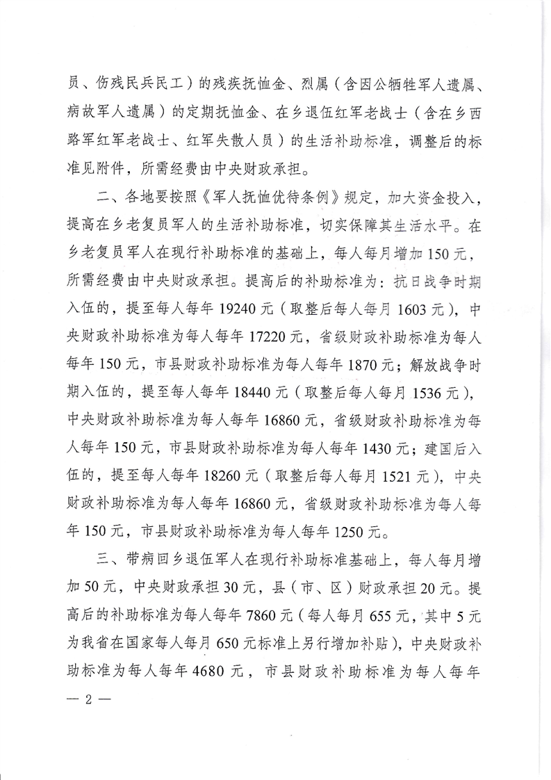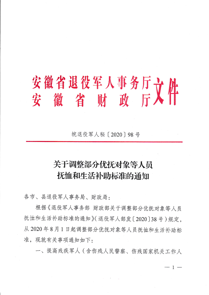 2020关于调整部分优抚对象等人员抚恤和生活补助标准的通知