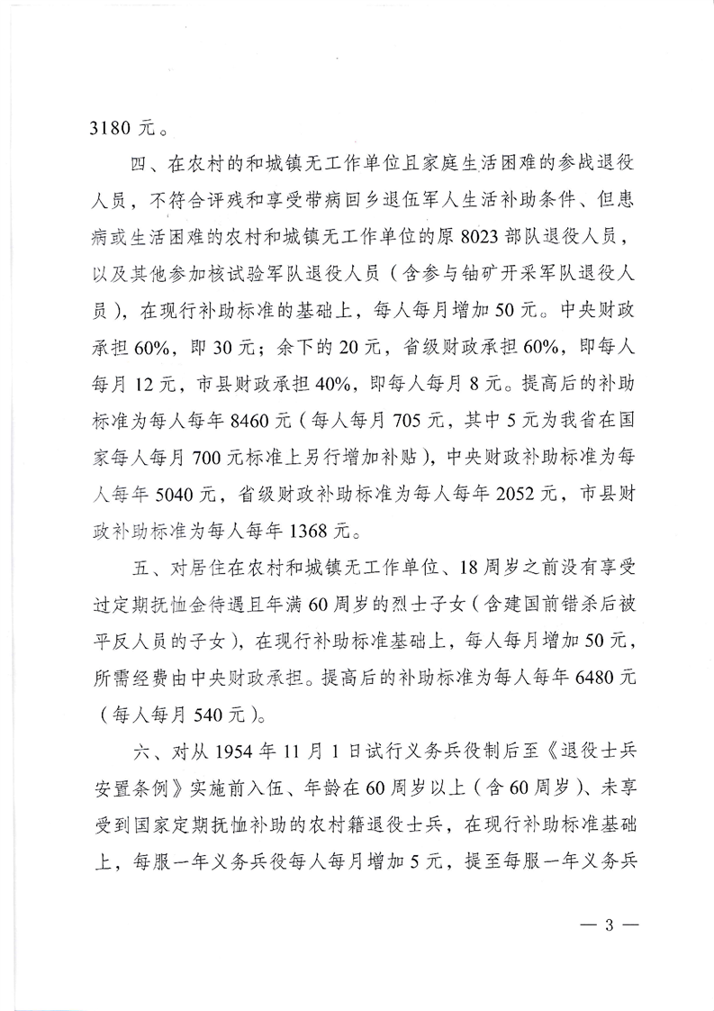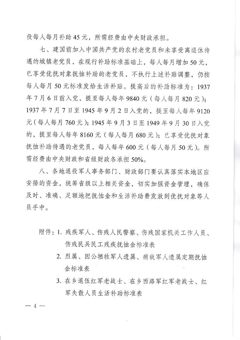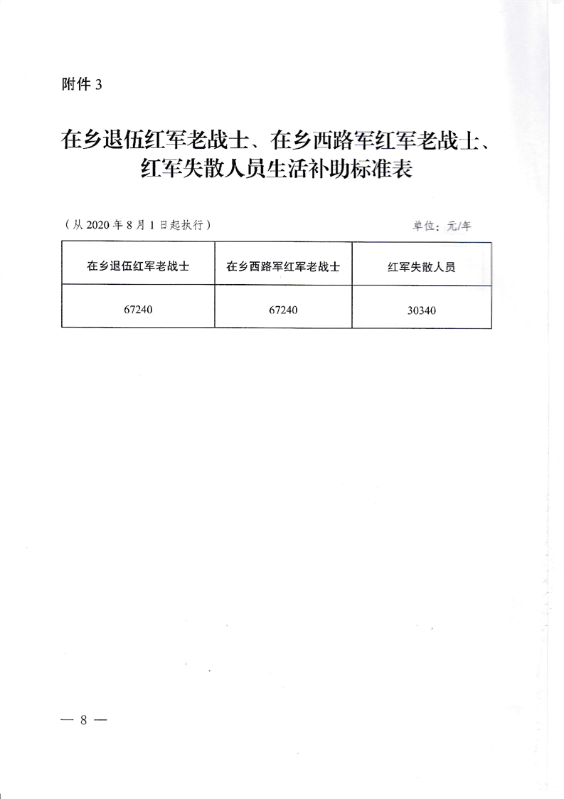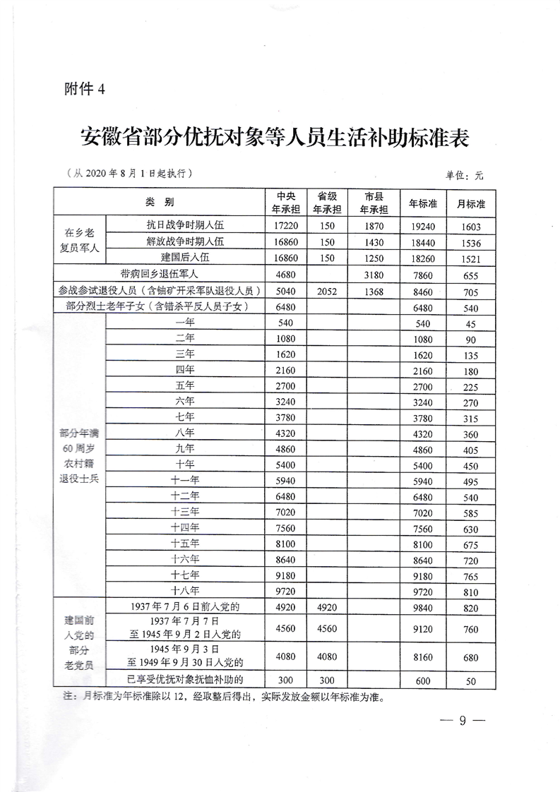 2020关于调整部分优抚对象等人员抚恤和生活补助标准的通知