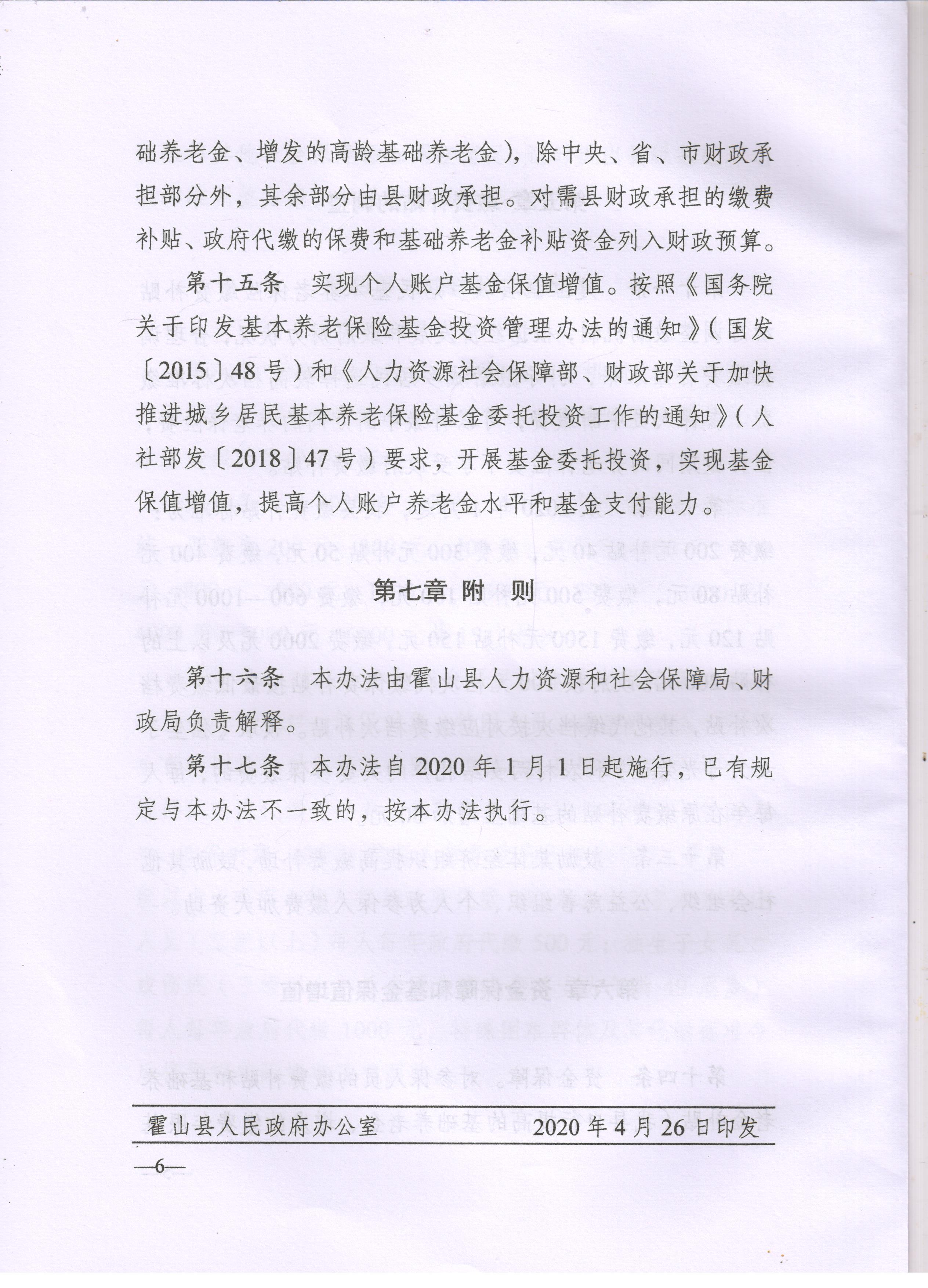 【转发上级政策】关于印发霍山县建立城乡居民基本养老保险待遇确定和基础养老金正常调整机制的实施办法的通知