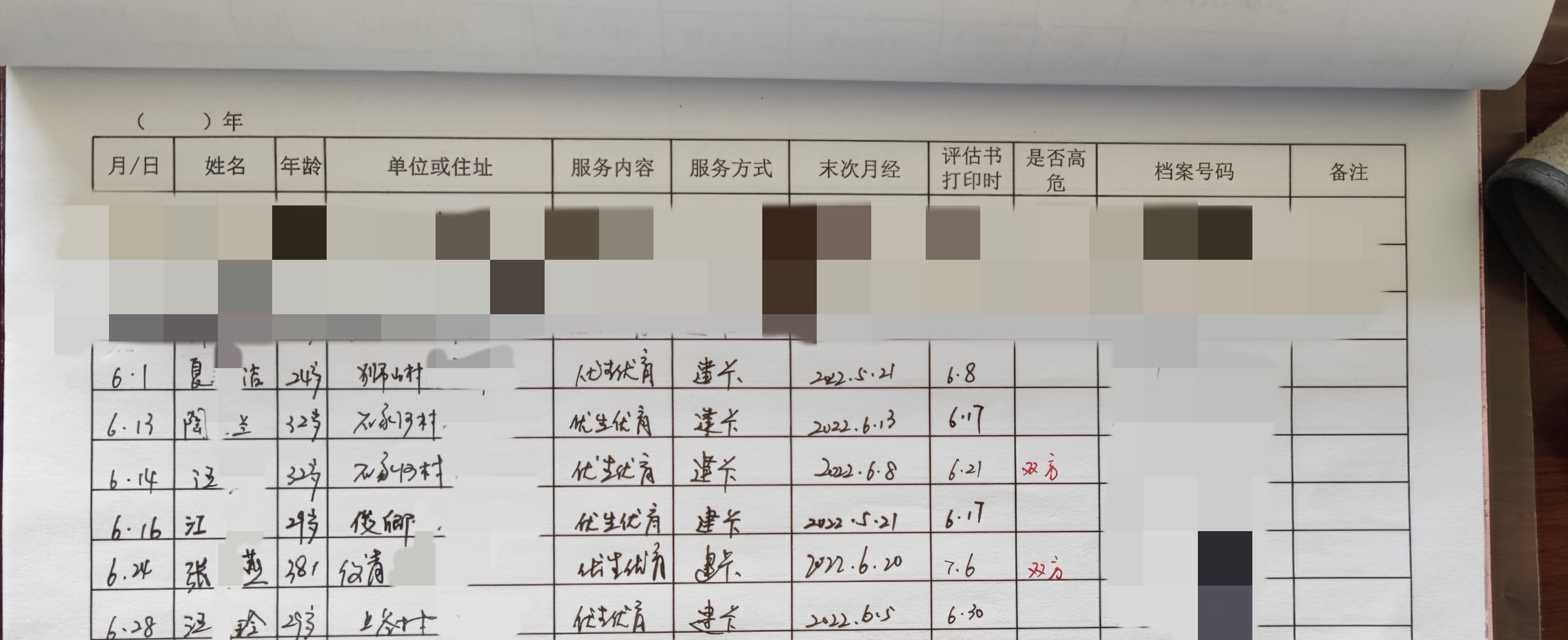 霍山县诸佛庵镇2022年6月份国家免费孕前优生健康检查完成进度表