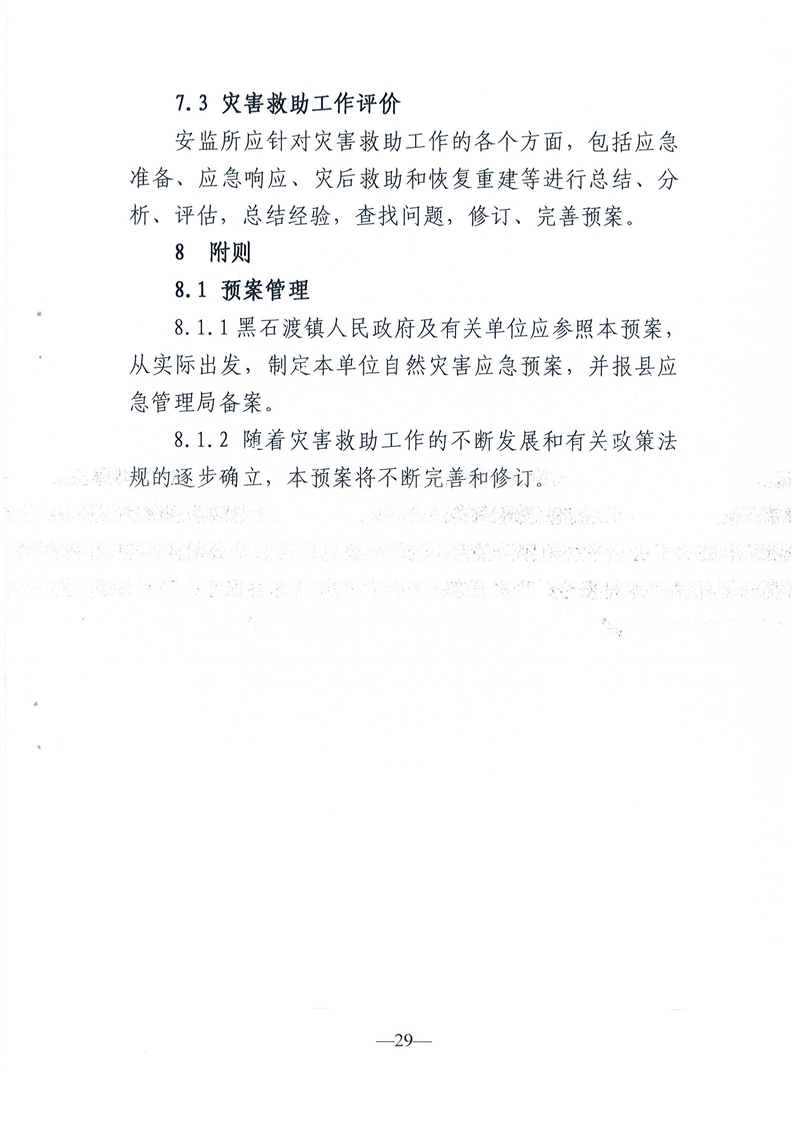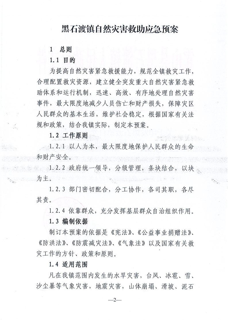 【自然灾害类预案】霍山县黑石渡镇自然灾害救助应急预案