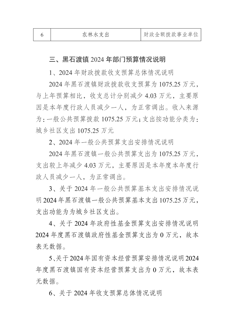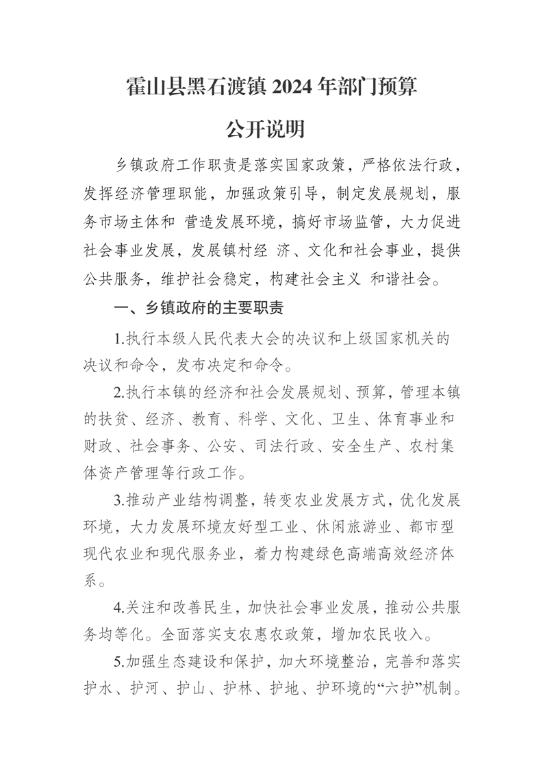 霍山县黑石渡镇2024年部门预算公开说明(附报表)