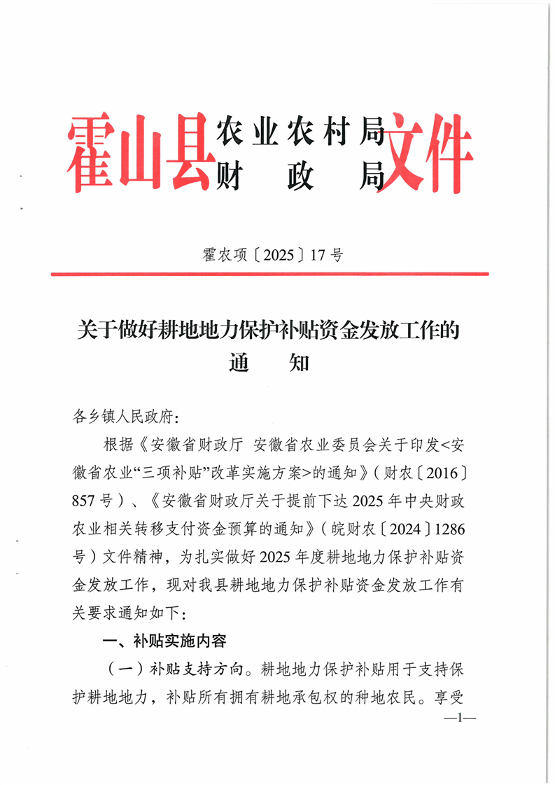 黑石渡镇2025年农业支持保护补贴发放通知
