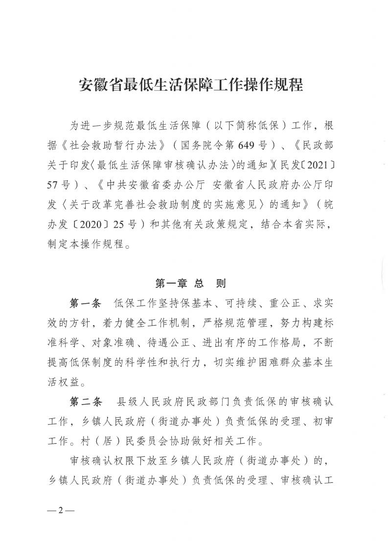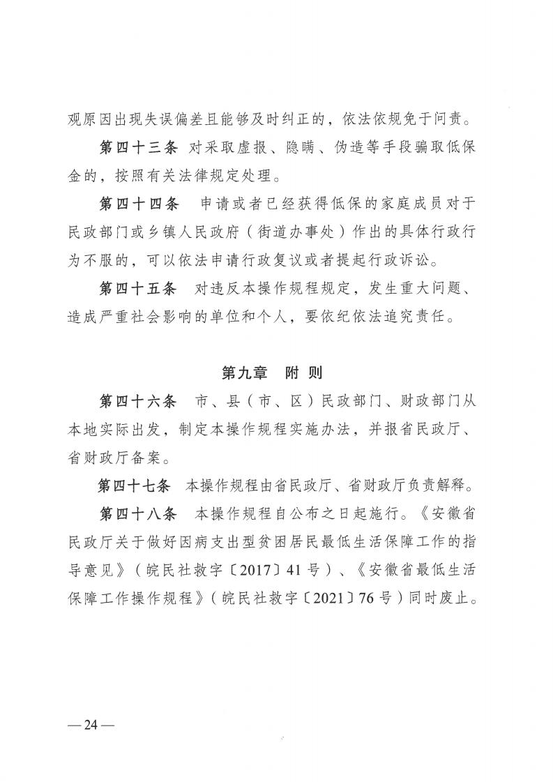 【政策法规文件】关于印发《安徽省最低生活保障工作操作规程》的通知(皖民社救字〔2023〕41号)