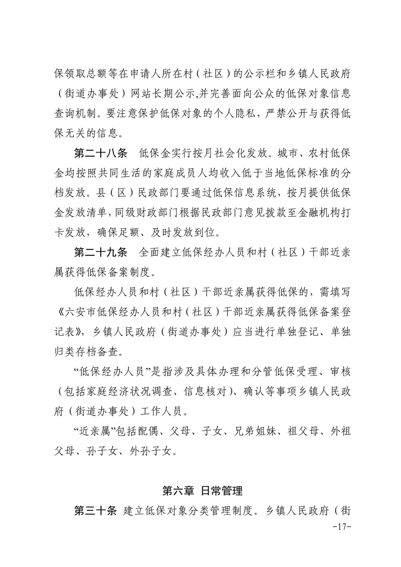【市配套文件】(六政办秘【2022】78号)六安市人民政府办公室关于印发《六安市最低生活保障工作操作规程》的通知