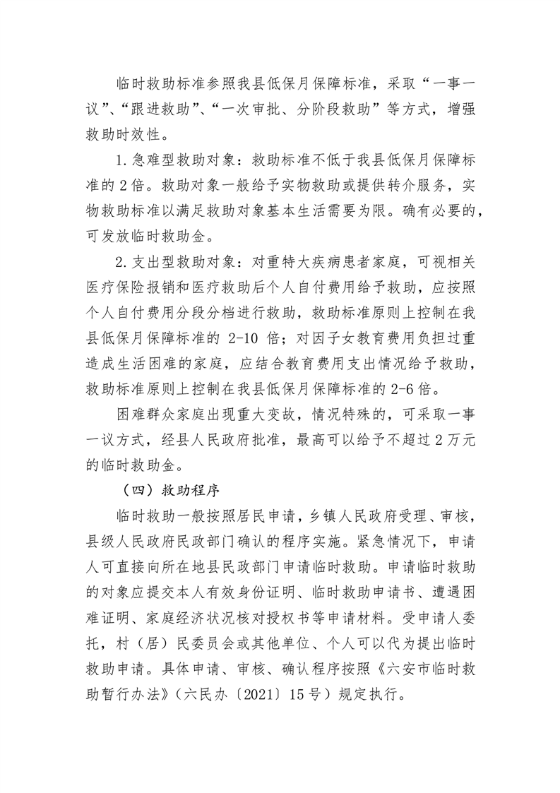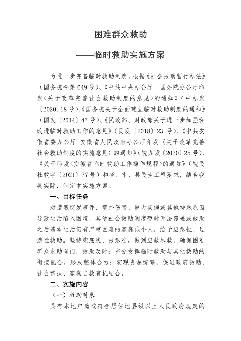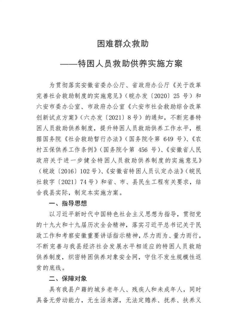 【县配套文件】关于印发《霍山县困难群众救助实施方案之城乡最低生活保障实施方案、特困人员救助供养实施方案、临时救助实施方案》的通知(霍民社救〔2022〕51号)