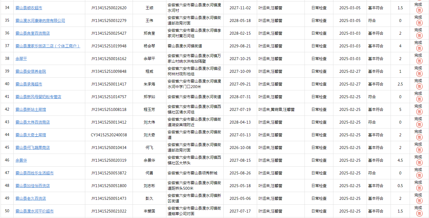 | 名 称: | 漫水河镇市场监督管理所2025年第一季度食品生产经营监督检查工作情况公示 |