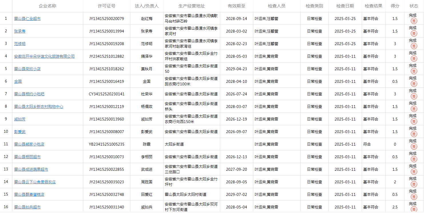 | 名 称: | 漫水河镇市场监督管理所2025年第一季度食品生产经营监督检查工作情况公示 | ||