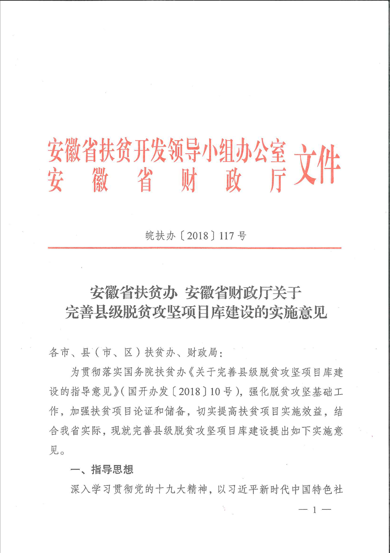 | 名 称: | 【项目申报流程】安徽省扶贫办 安徽省财政厅关于完善县级脱贫攻坚项目库建设的实施意见 |