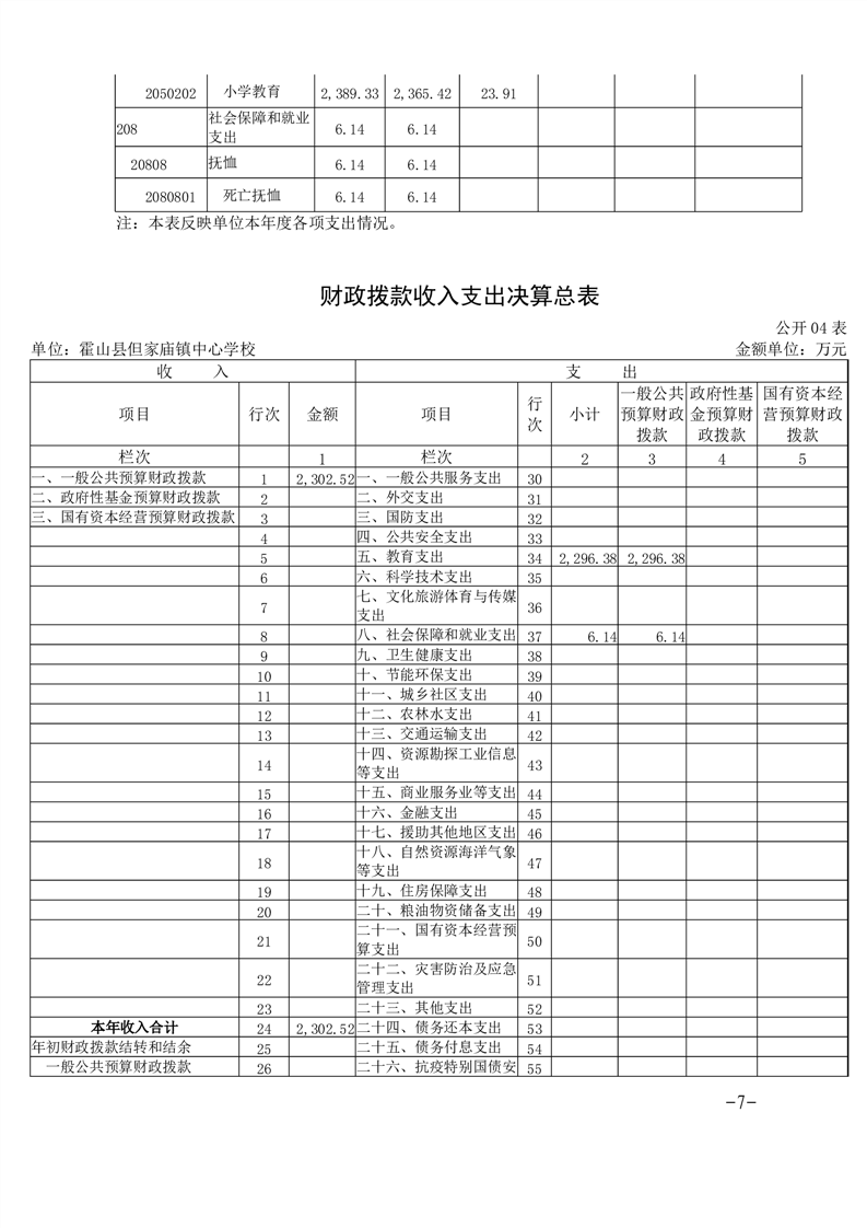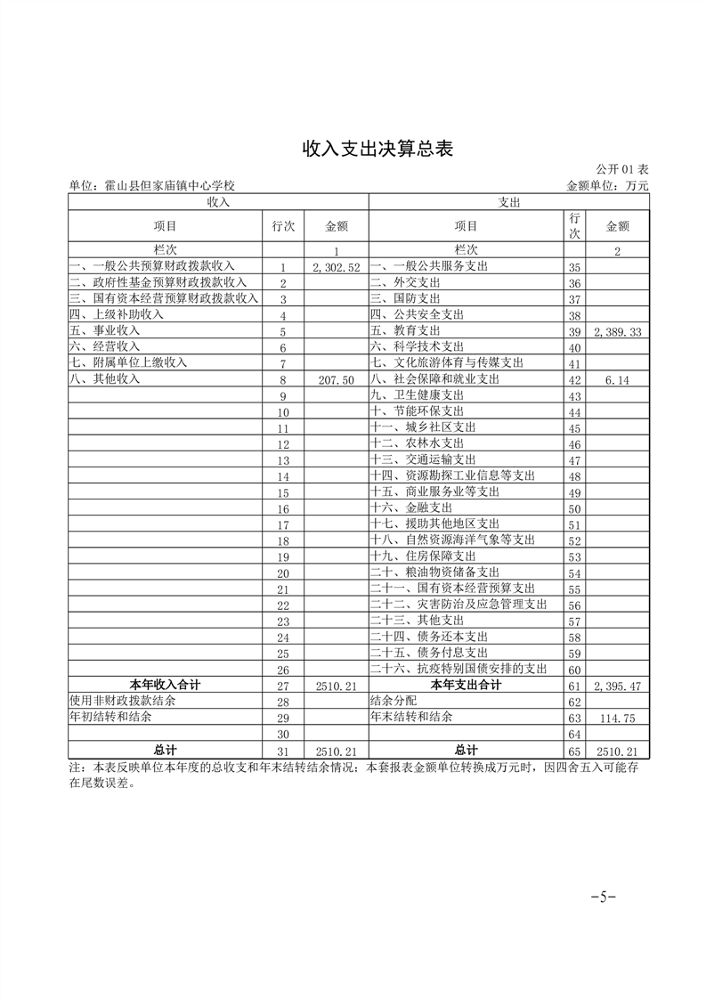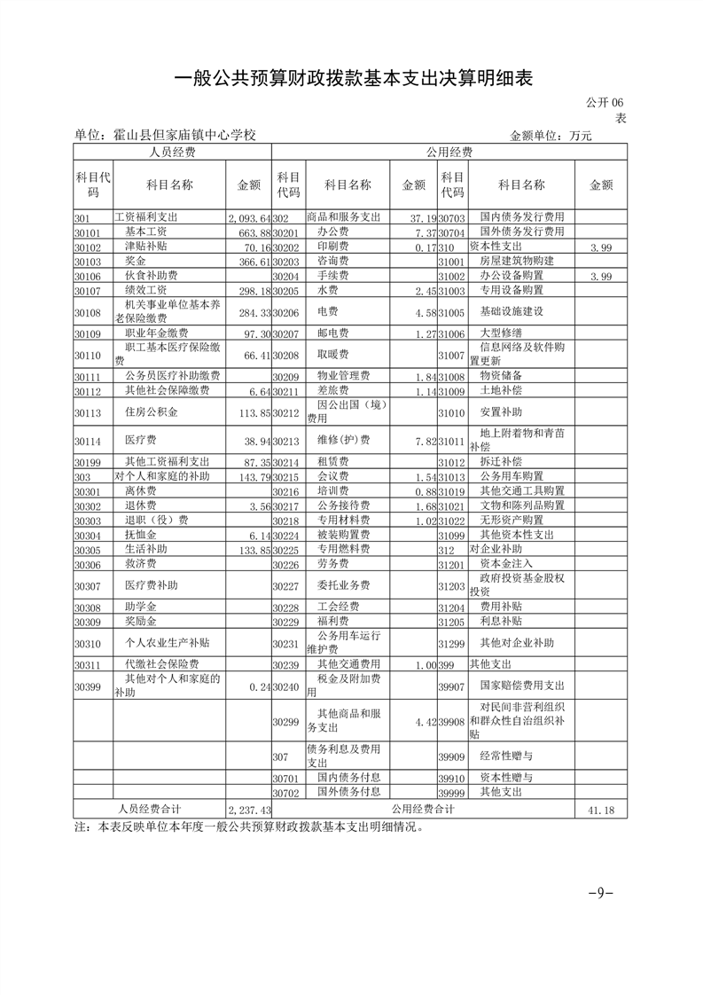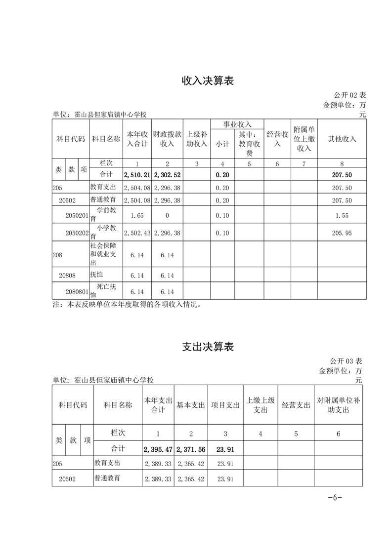 名 称: | 霍山县但家庙镇2023年度义务教育决算 |