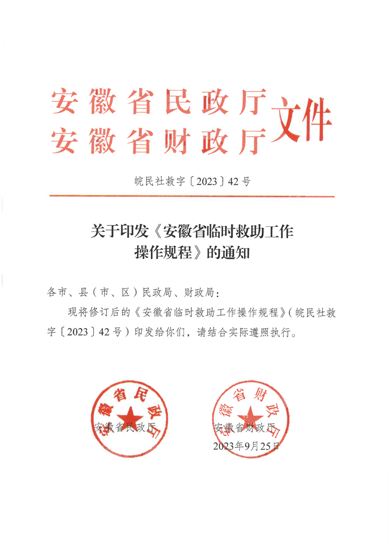 | 文 号: | 皖民社救字【2023】42号 |