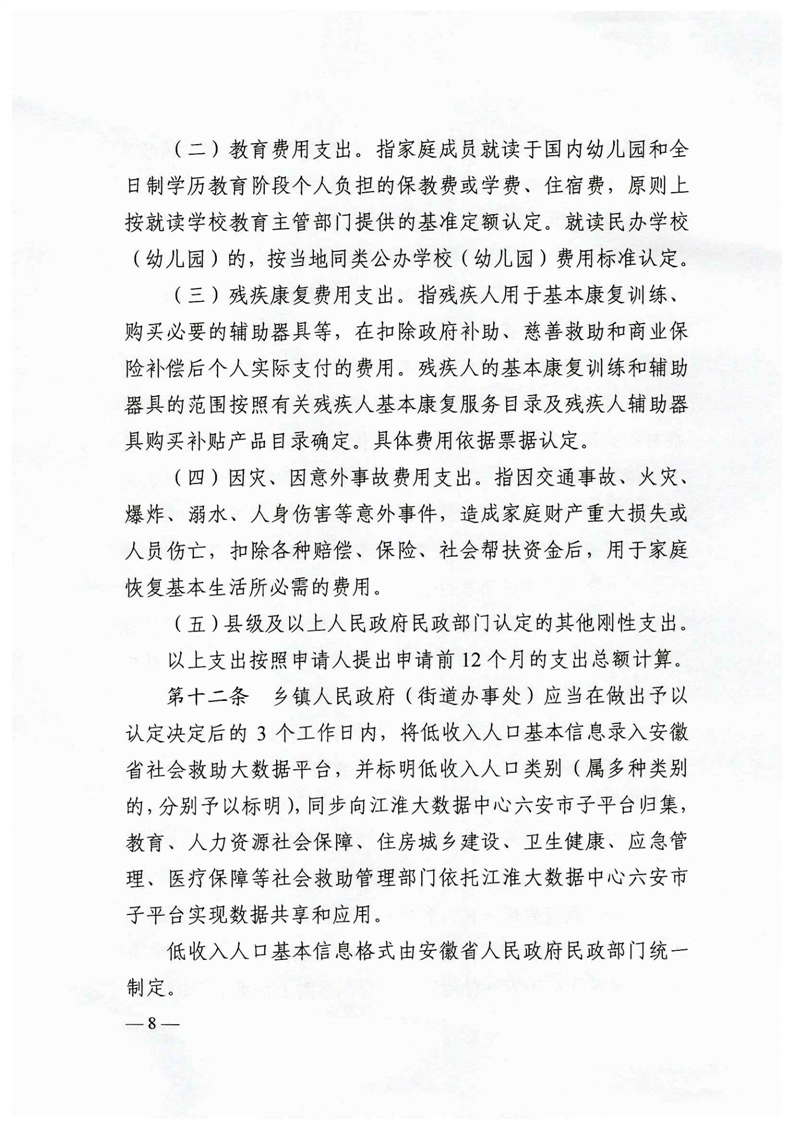 | 名 称: | 六民社救[2021]5号关于印发《六安市低收入人口认定及救助暂行办法》的通知 | ||