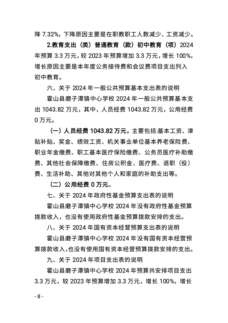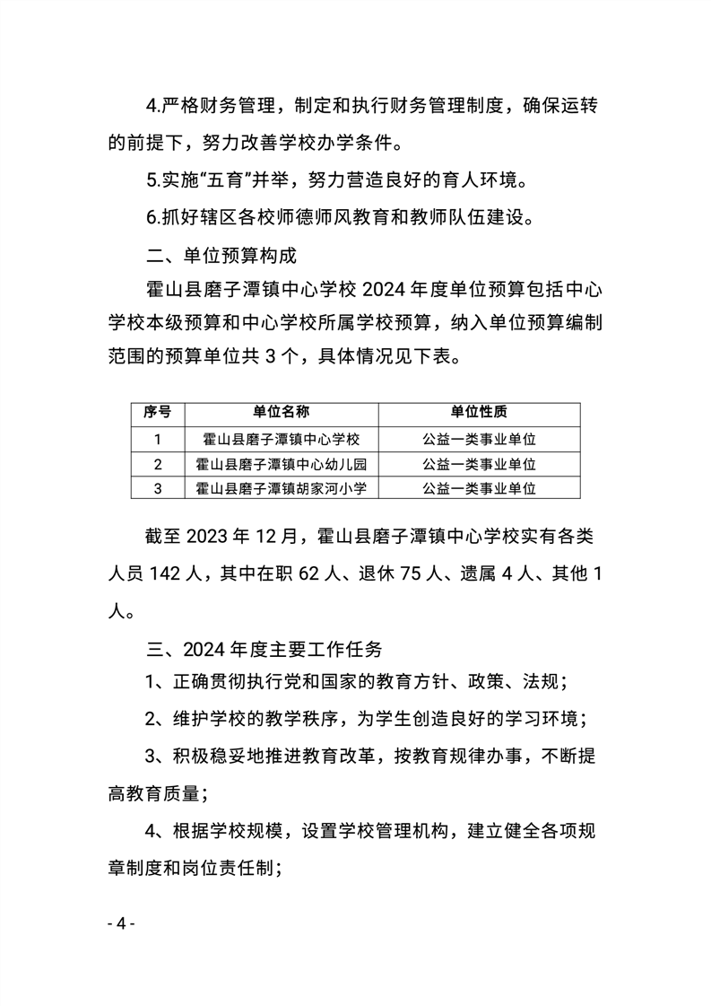 | 名 称: | 霍山县磨子潭镇中心学校2024年经费预算信息 |