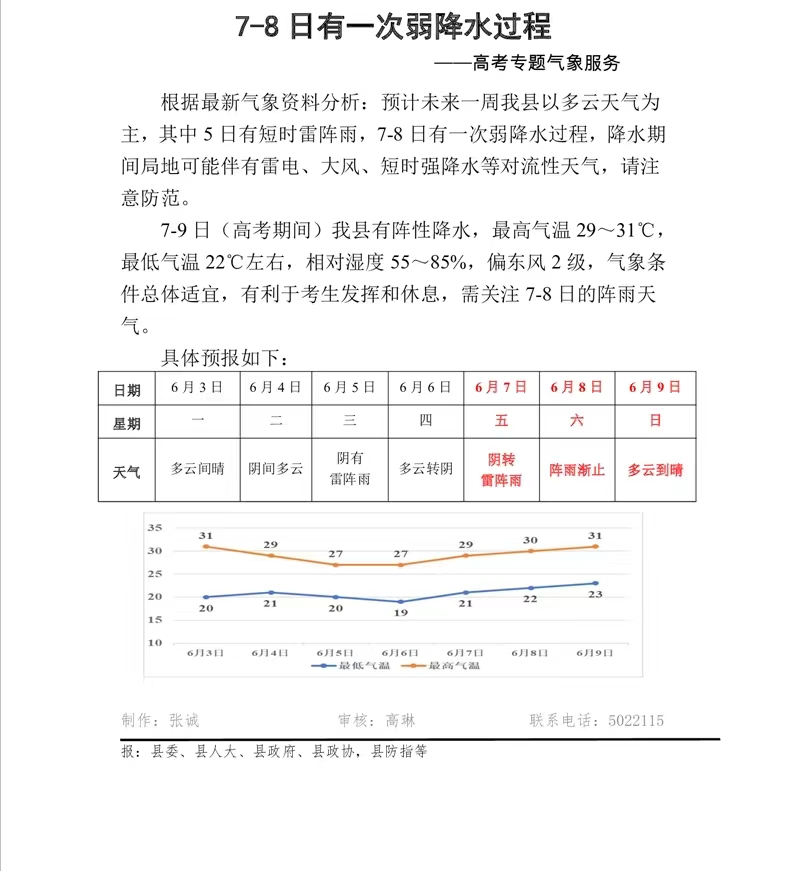 | 名 称: | 2024年【总第29期】——高考专题气象服务 | ||
