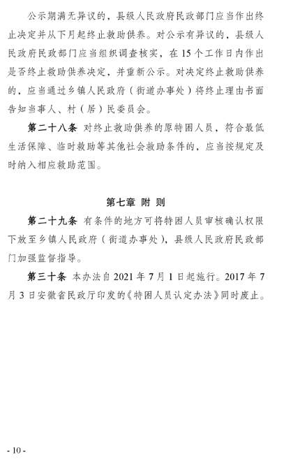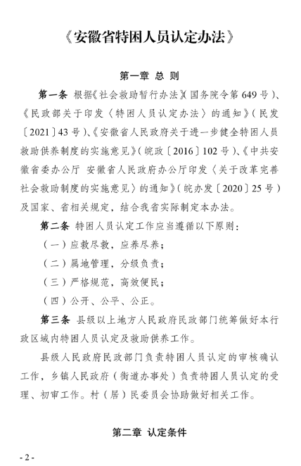 | 名 称: | 关于印发《安徽省特困人员认定办法》的通知(皖民社救字〔2021〕74号) |