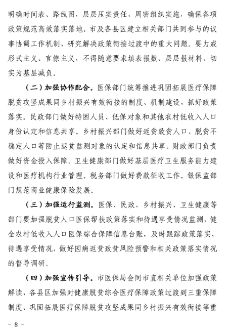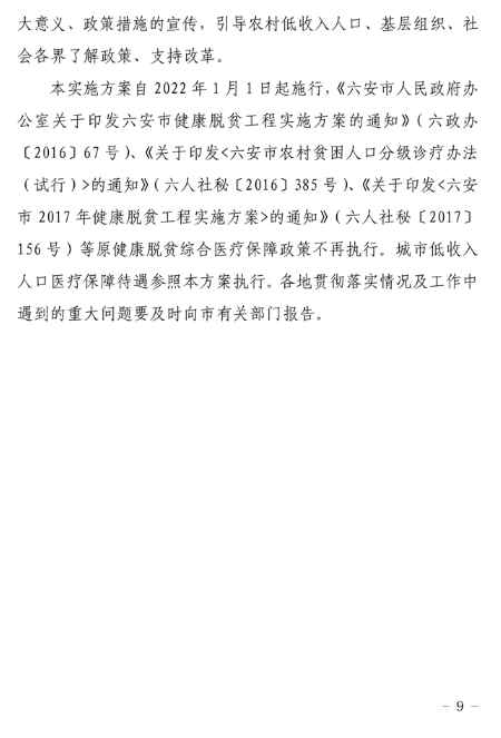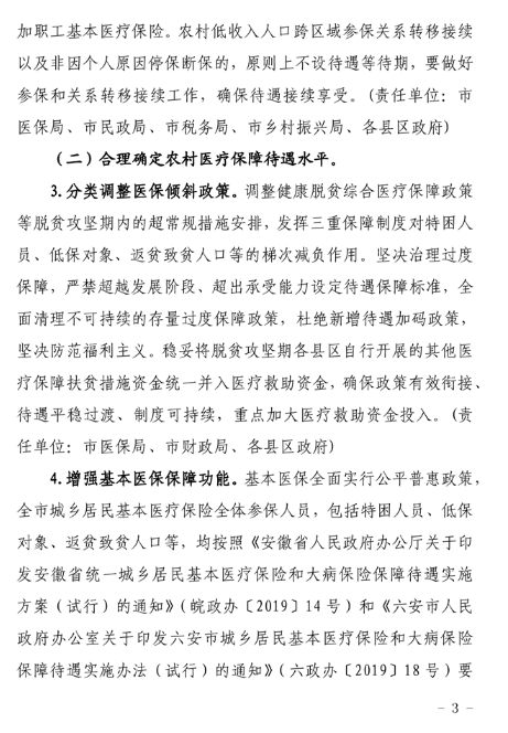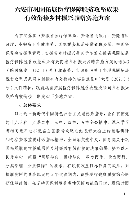 名 称: | 【市级政策文件】六安市医疗保障局等关于印发六安市巩固拓展医疗保障脱贫攻坚成果有效衔接乡村振兴战略实施方案的通知 |