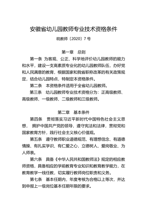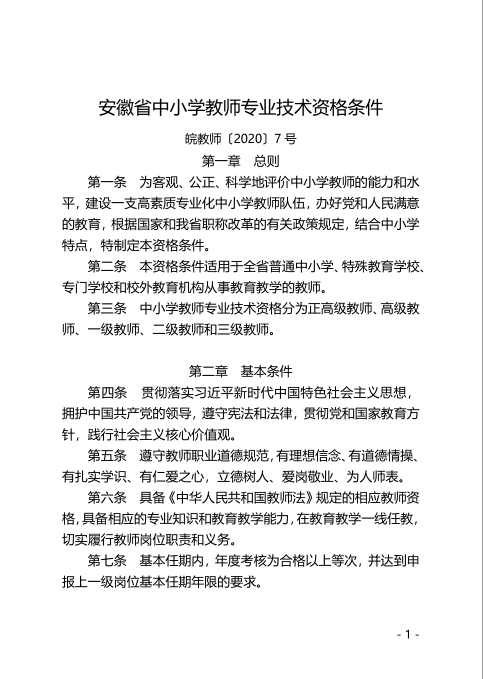 名 称: | [评审政策]安徽省幼儿园、中小学教师专业资格评审条件 |