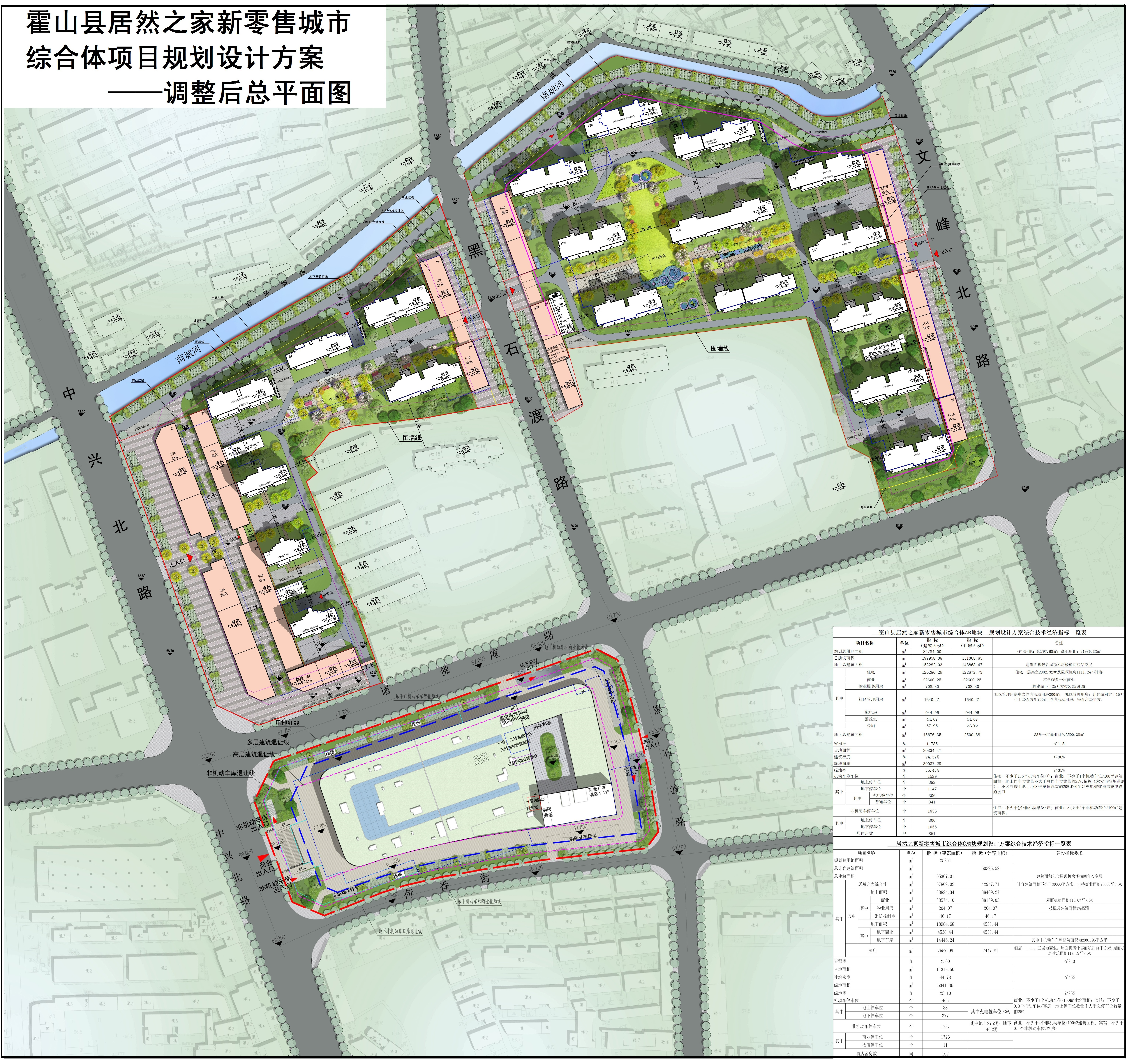附:霍山县居然之家新零售城市综合体项目调整前后总平面图
