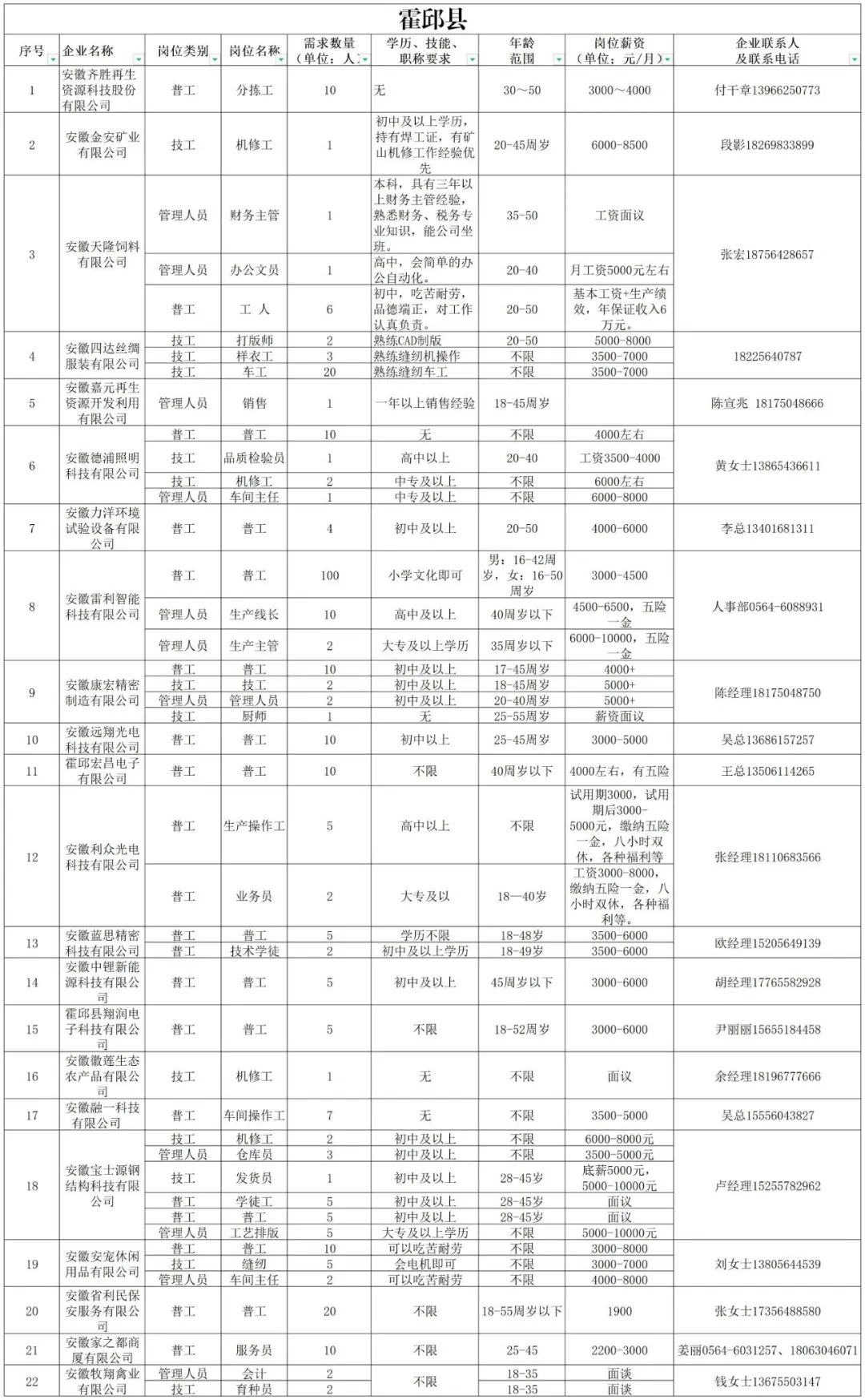 | 名 称: | 霍山县大化坪镇转六安市人力资源和社会保障局人力资源市场2024年2月份用工信息 | ||