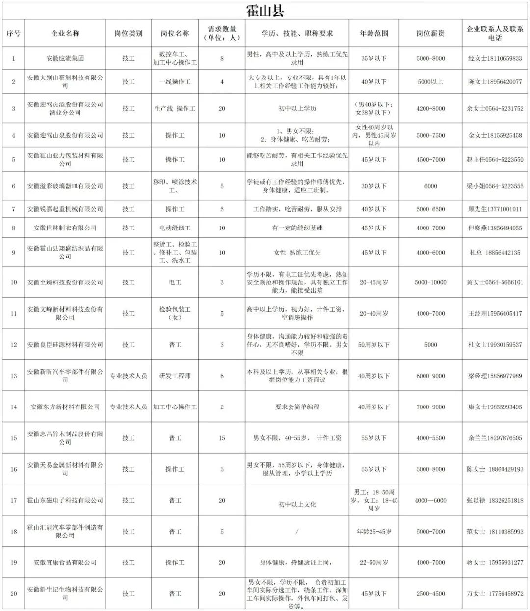 | 名 称: | 霍山县大化坪镇转六安市人力资源和社会保障局人力资源市场2024年2月份用工信息 |
