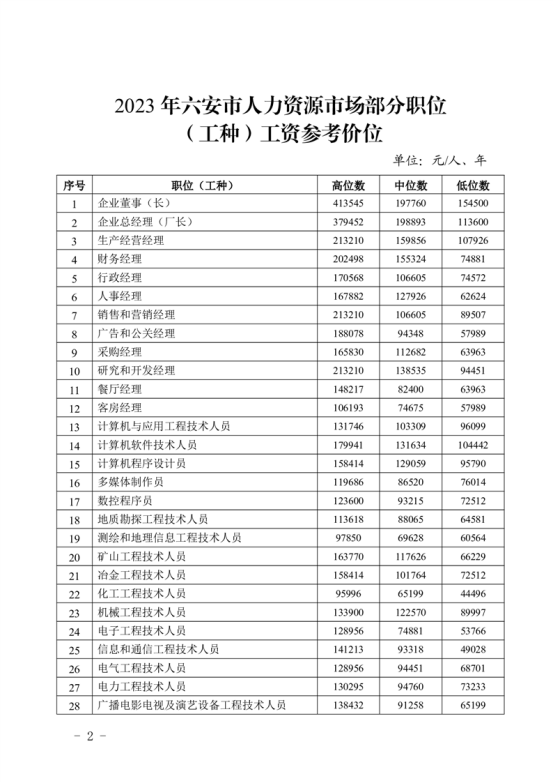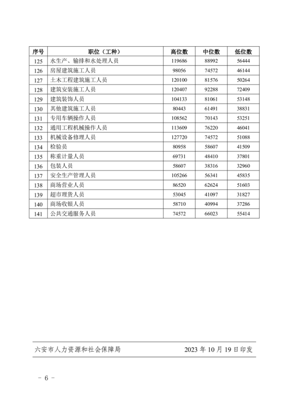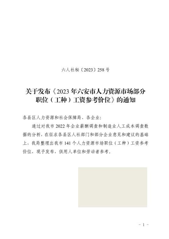 | 名 称: | 关于发布《2023年六安市人力资源市场部分职位(工种)工资参考价位》的通知 |