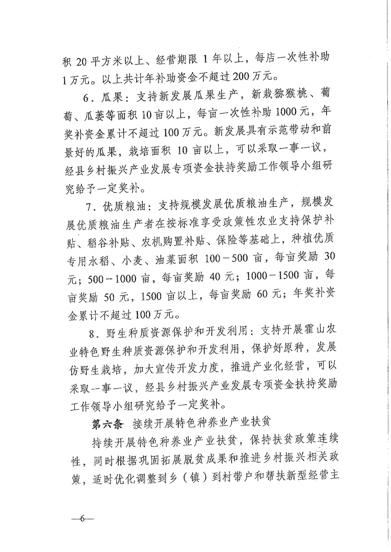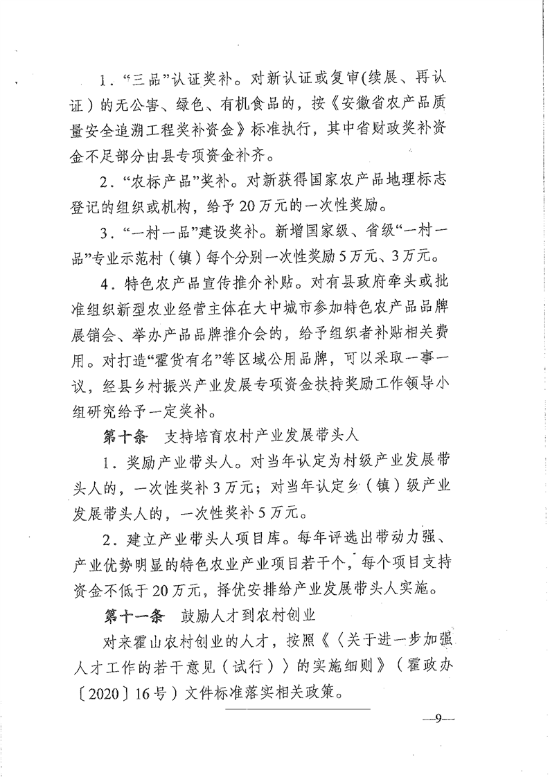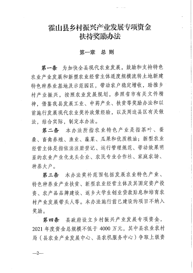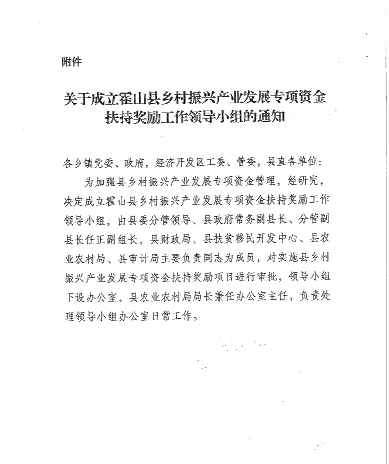 | 名 称: | 【县级规范性文件】中共霍山县委办公室霍山县人民政府办公室关于印发《霍山县乡村振兴产业发展专项资金扶持奖励办法》的通知(有效) |