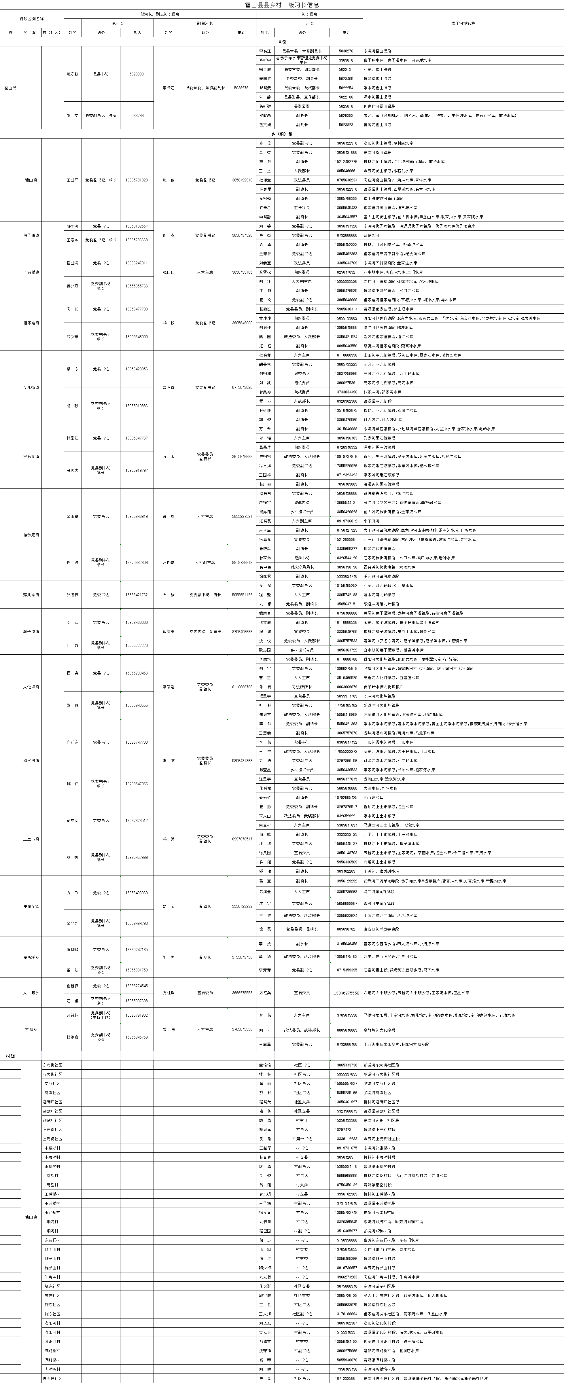2023年霍山县三级河长名录