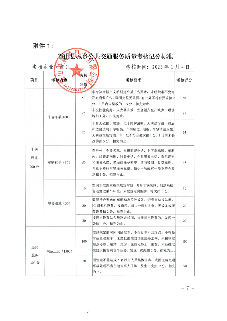 | 名 称: | 霍山县城乡公共交通服务质量考核结果 | ||