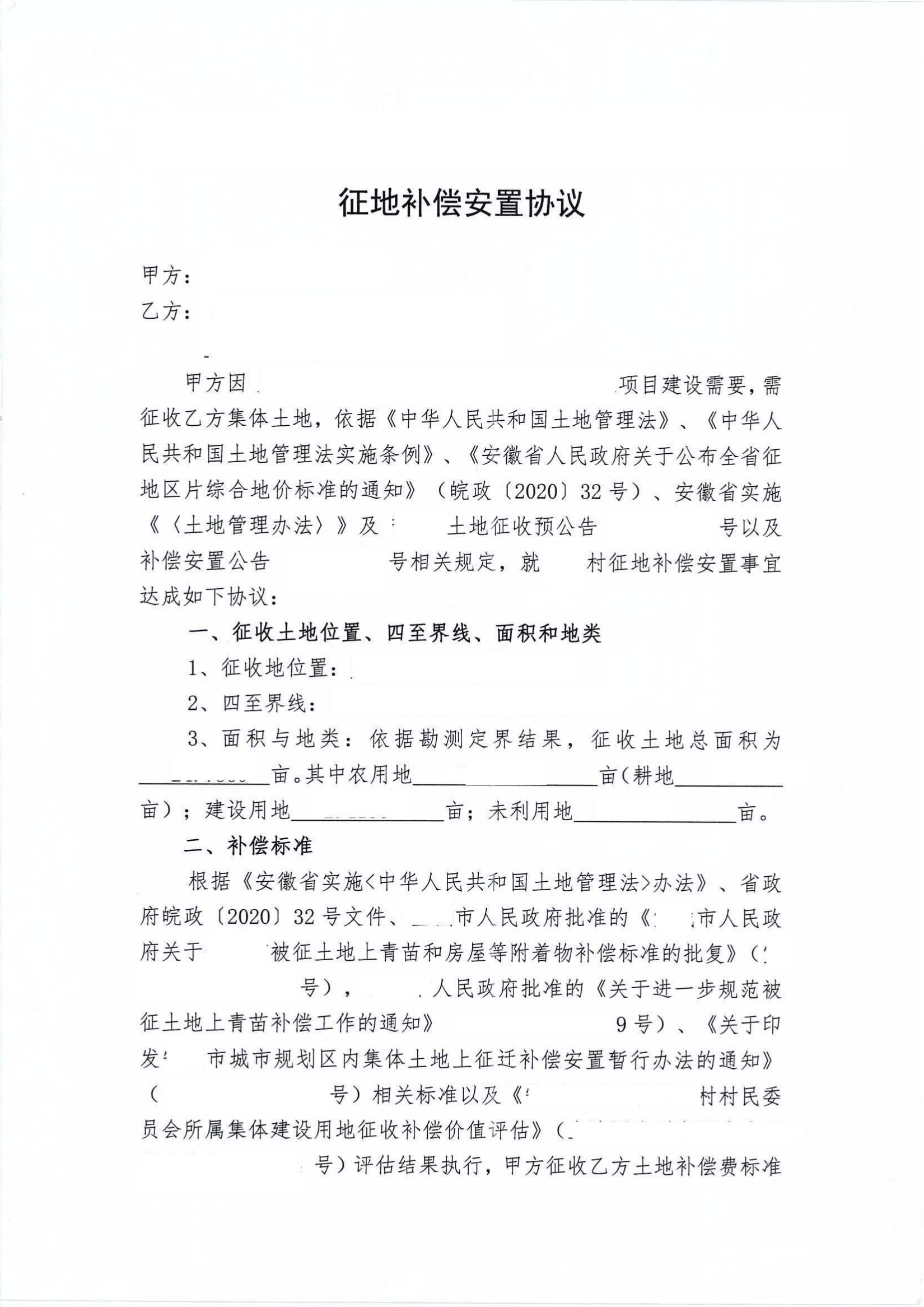 | 名 称: | 省级征地补偿安置协议示范文本 |