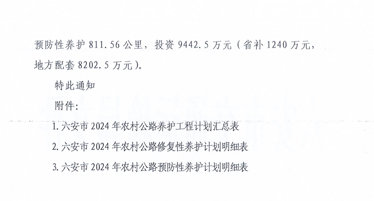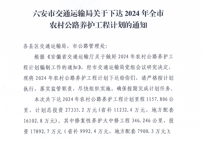 | 名 称: | 【农村公路养护管理信息】关于下达2024年度农村公路养护工程建设计划的通知 |
