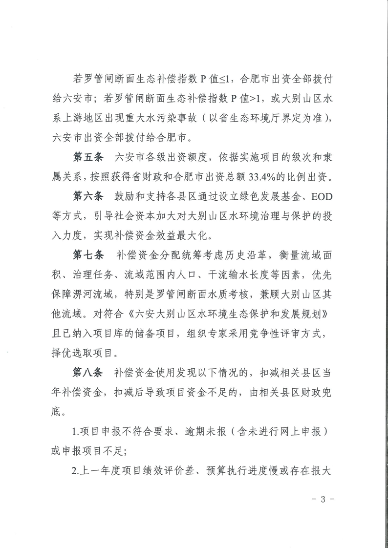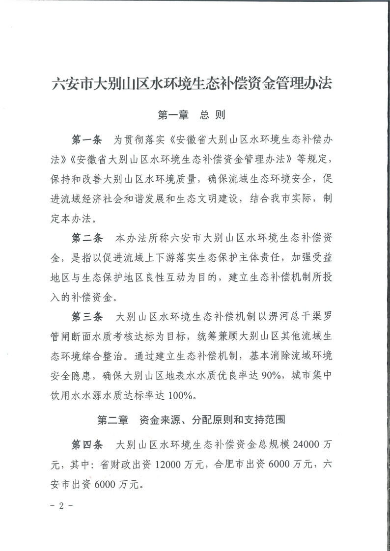 | 名 称: | 六安市大别山区水环境生态补偿资金管理办法 |