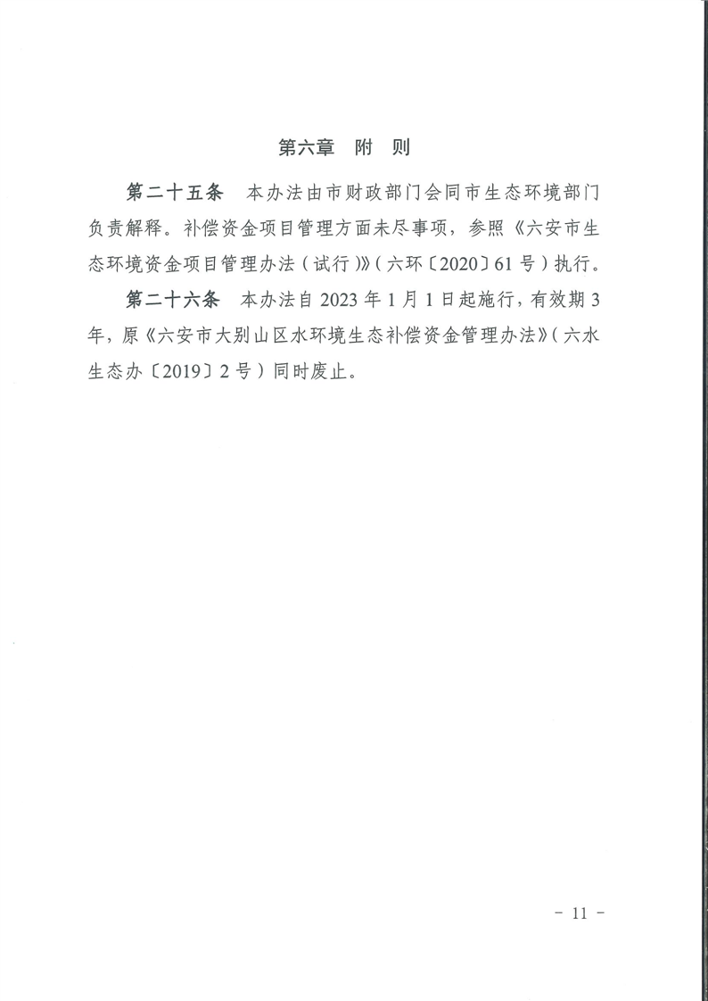 | 名 称: | 六安市大别山区水环境生态补偿资金管理办法 | ||