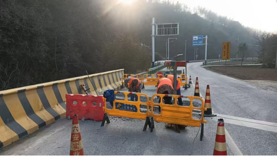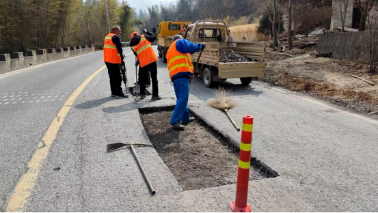 我们按照“分类施策、逐段治理、坑槽立补”的原则,对破损路段进行集中整治。截至目前,累计出动养护人员 60人次,修补路面坑槽135平方米,修复前进桥梁伸缩缝1处,同时对延线安全设施进行排查,增设安全警示标牌2块,有效保证了道路安全畅通。