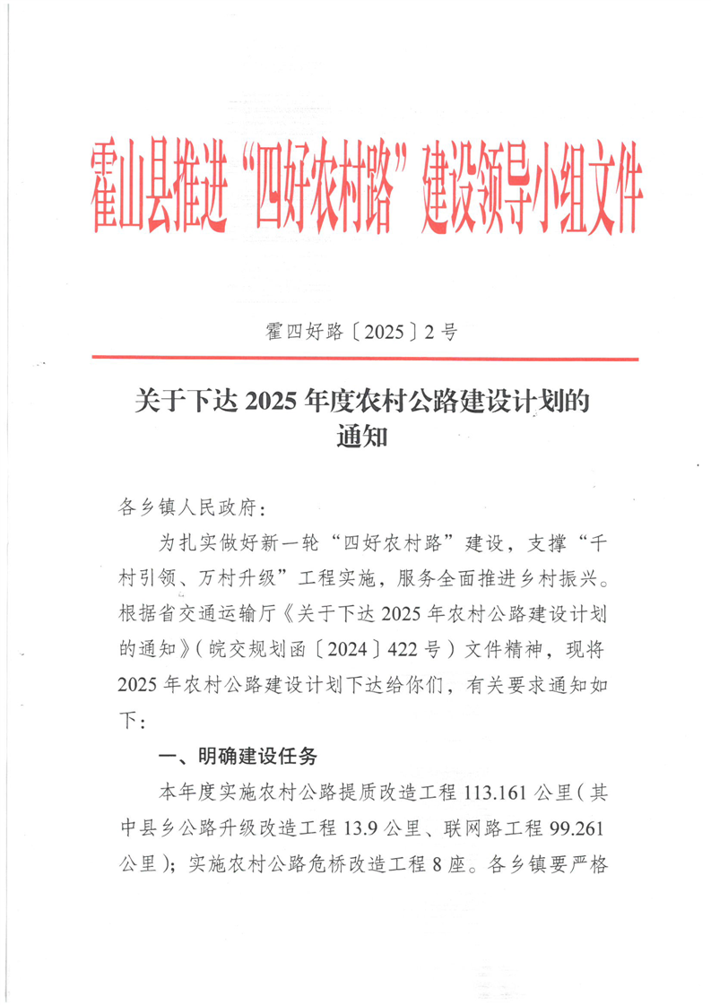 | 名 称: | 【农村公路建设计划】关于下达2025年度农村公路建设计划的通知 | ||