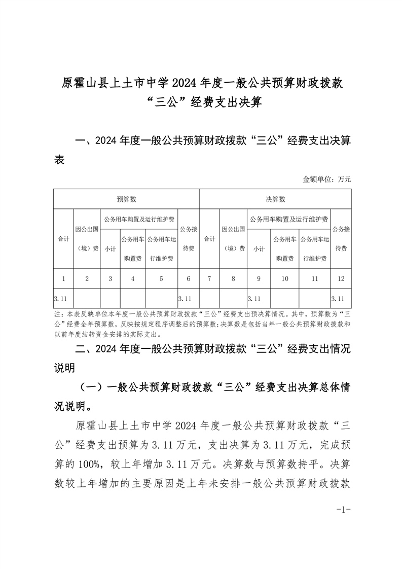 | 名 称: | 原霍山县上土市中学2024年三公经费决算公开 |
