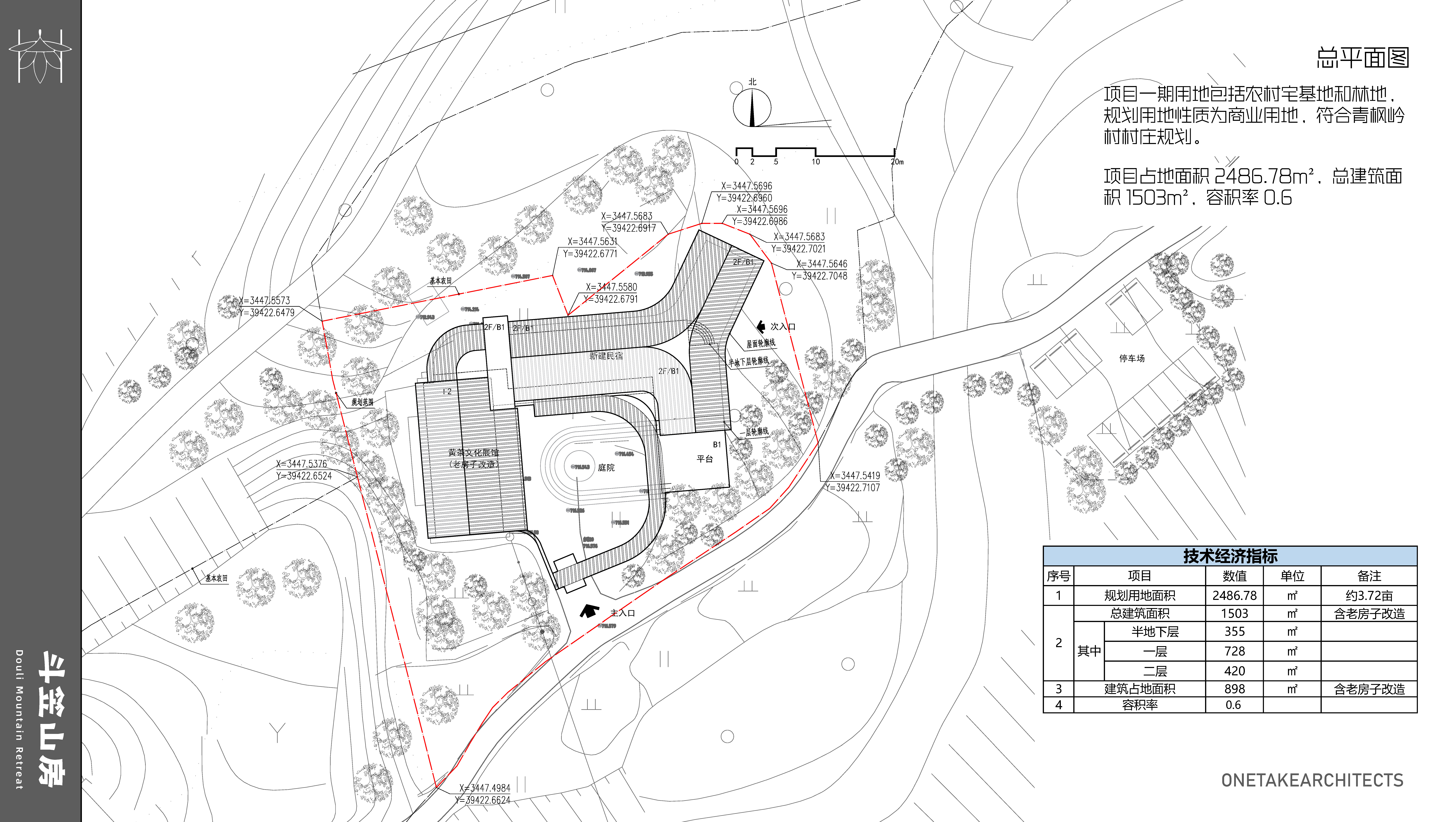 1、项目概况:大化坪镇青枫岭村,主要建设内容为新建高端民宿、标准化茶叶加工厂和茶文化体验馆,并对1栋老屋进行改造,流转茶园300亩、石斛野生基地200亩。其中一期项目用地面积约3.7亩,规划将老屋改扩建为黄茶文化展馆并新建1栋2层民宿,规划总建筑面积约1503平方米,容积率0.6。