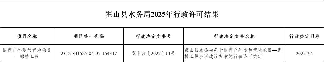 | 名 称: | 霍山县水务局2025年行政许可结果(十三) |