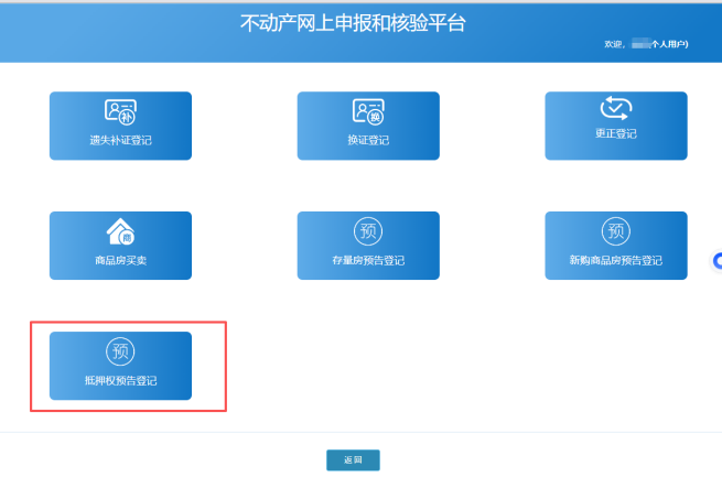 3.进入不动产网上申报平台,选择“新购商品房预告登记”