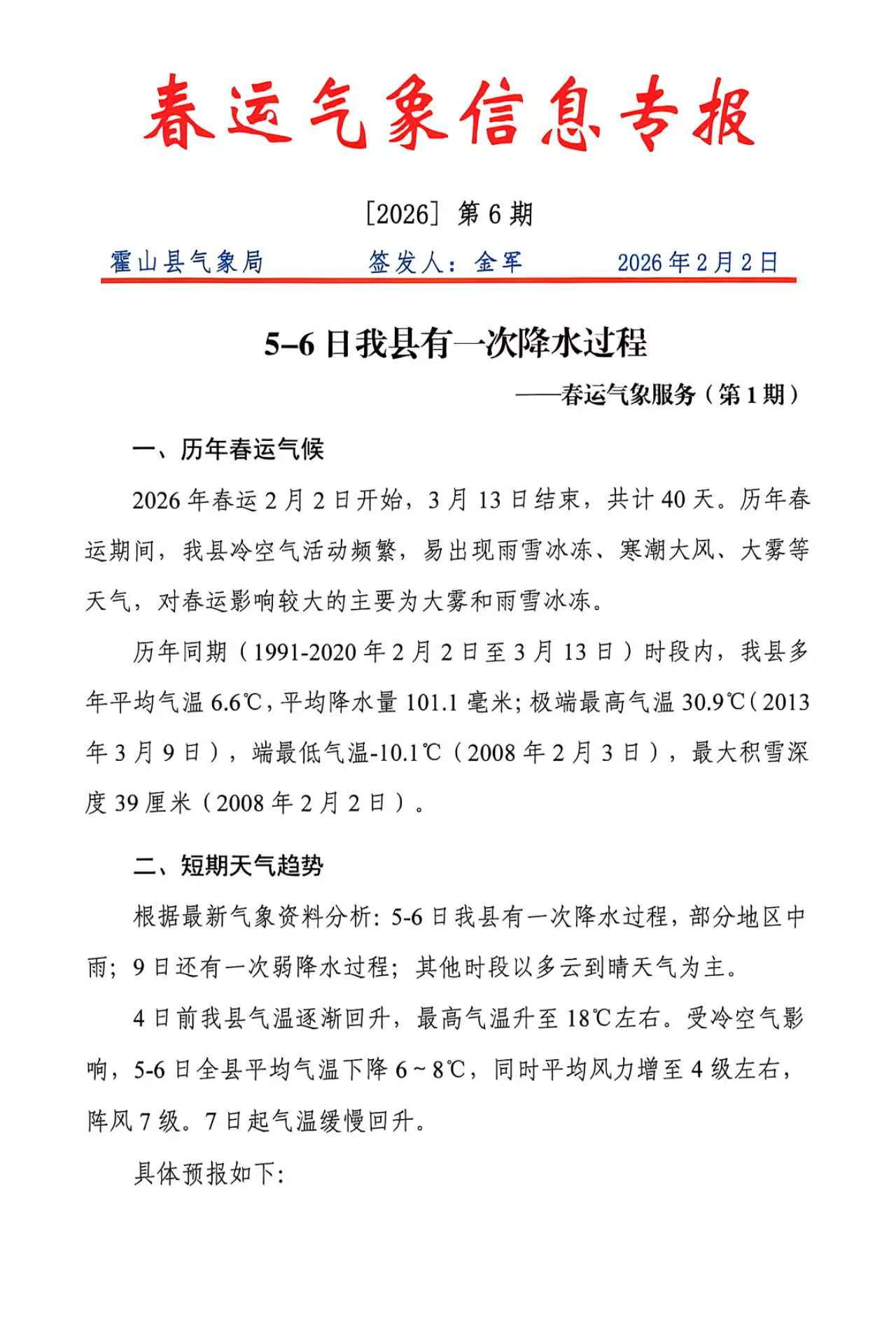 | 名 称: | 2026年【总第6期】春运气象服务(第1期) |