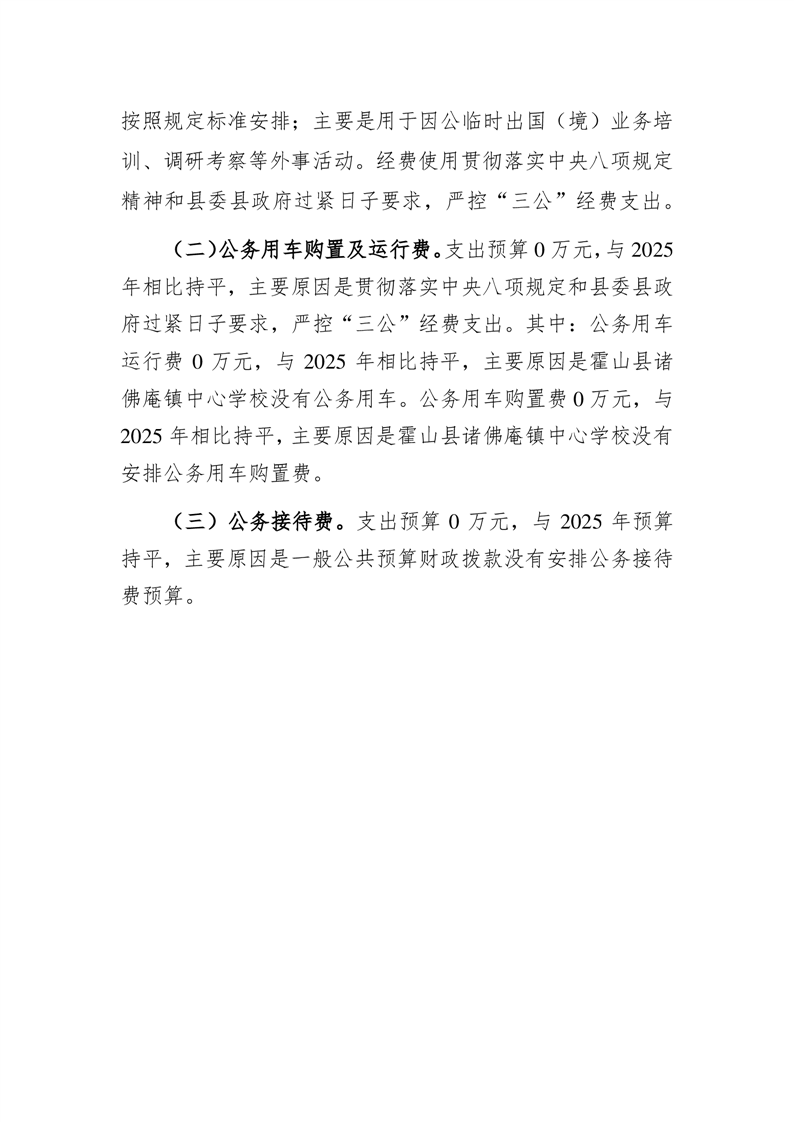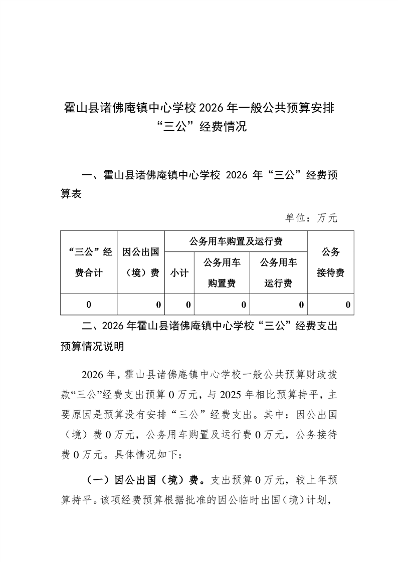 | 名 称: | 霍山县诸佛庵镇中心学校2026年一般公共预算安排“三公”经费情况 | ||