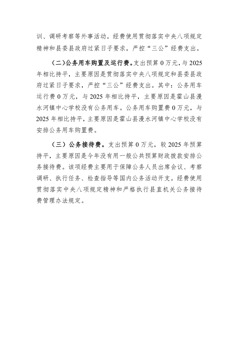 | 名 称: | 霍山县漫水河镇中心学校2026年一般公共预算安排“三公”经费情况 |