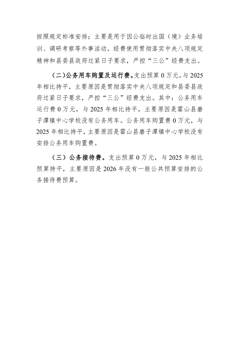 | 名 称: | 霍山县磨子潭镇中心学校2026年一般公共预算安排“三公”经费情况 |